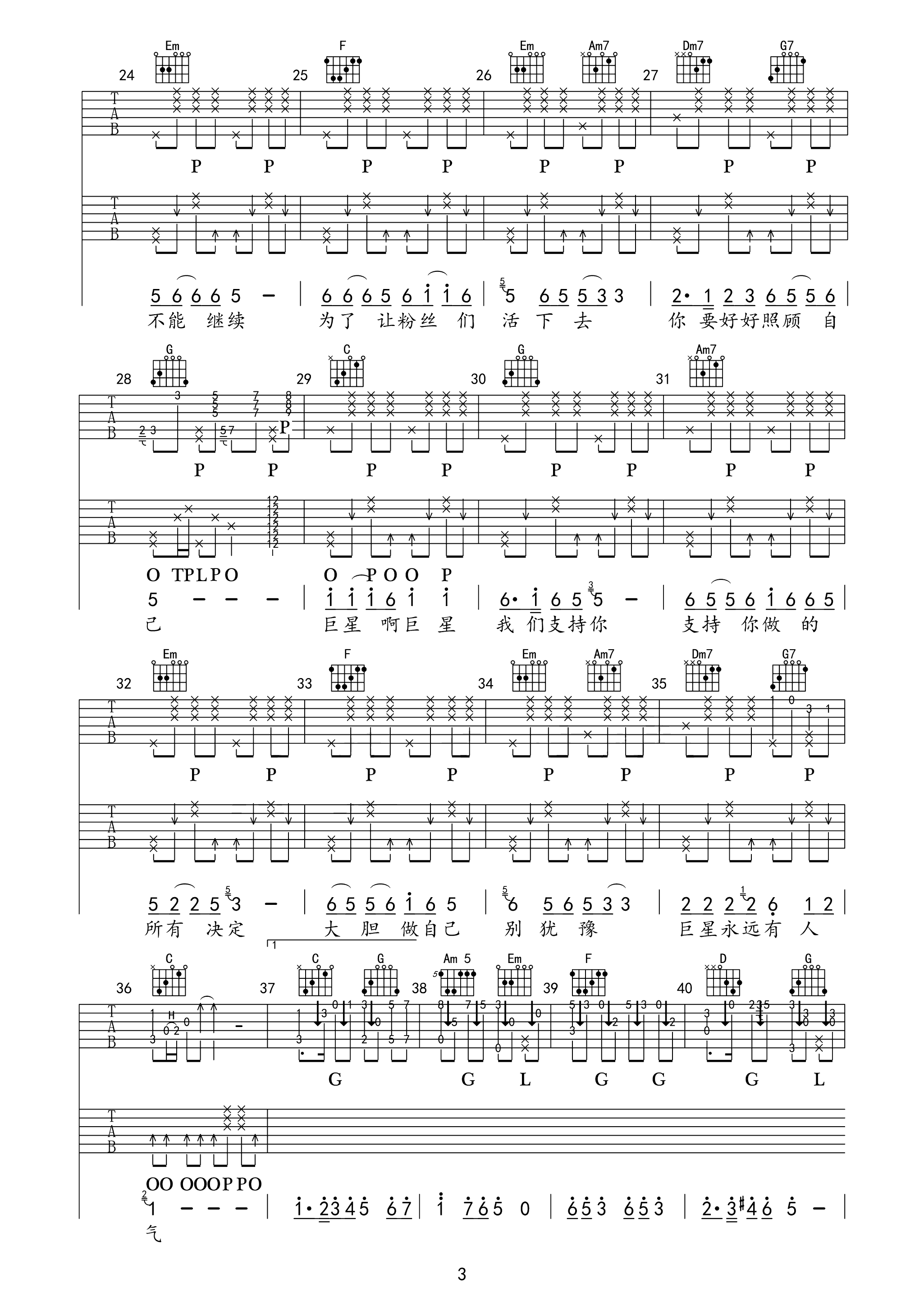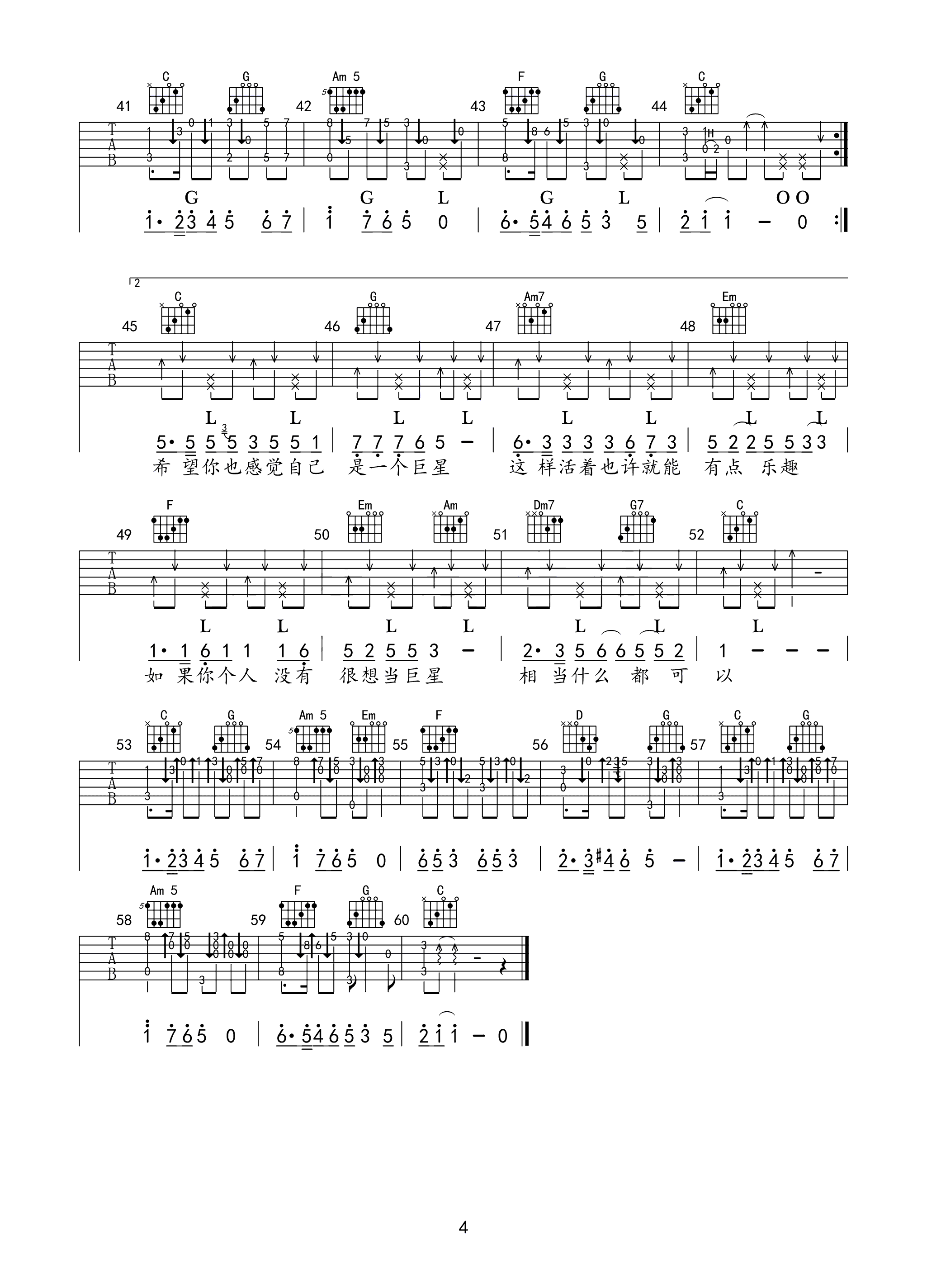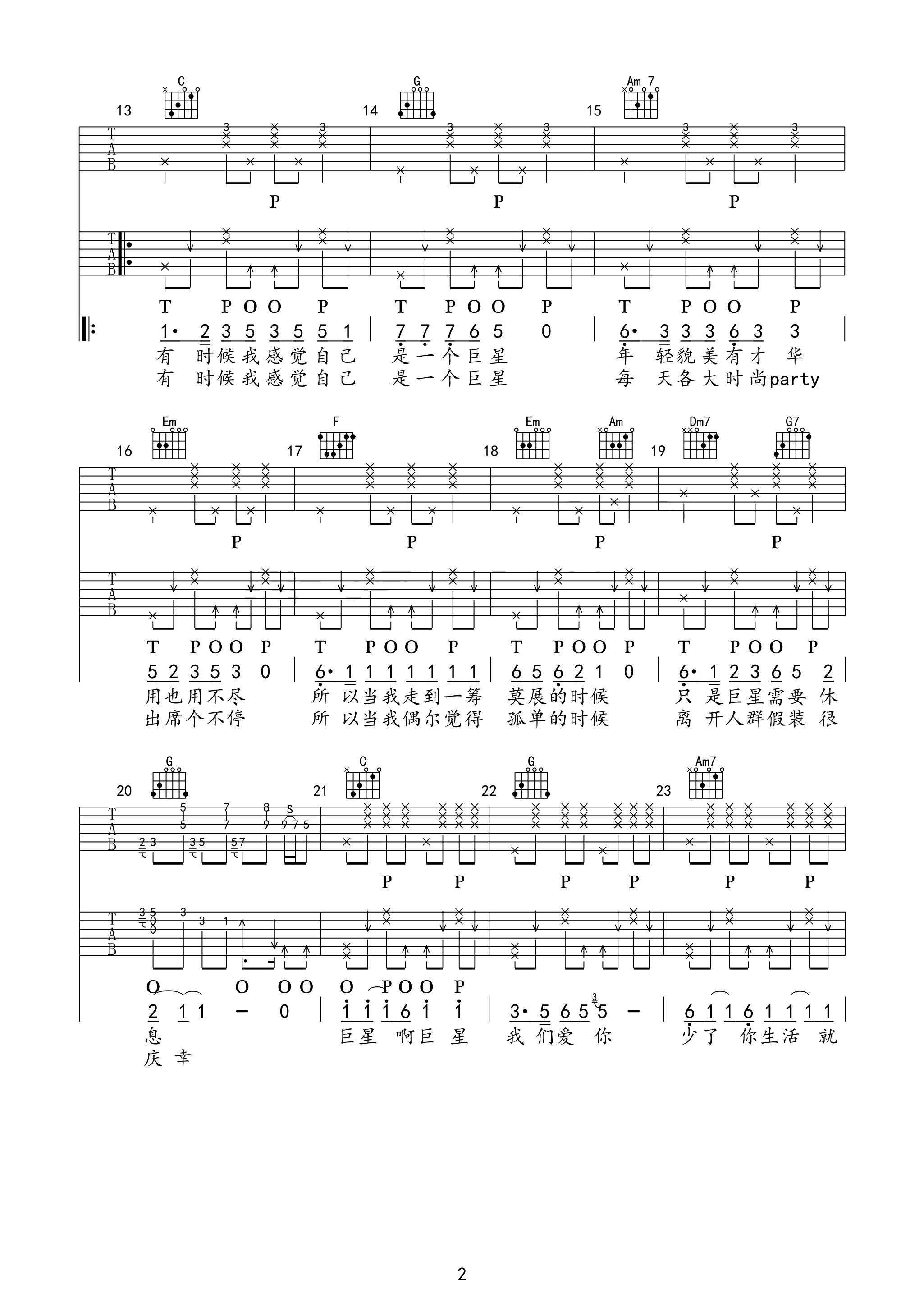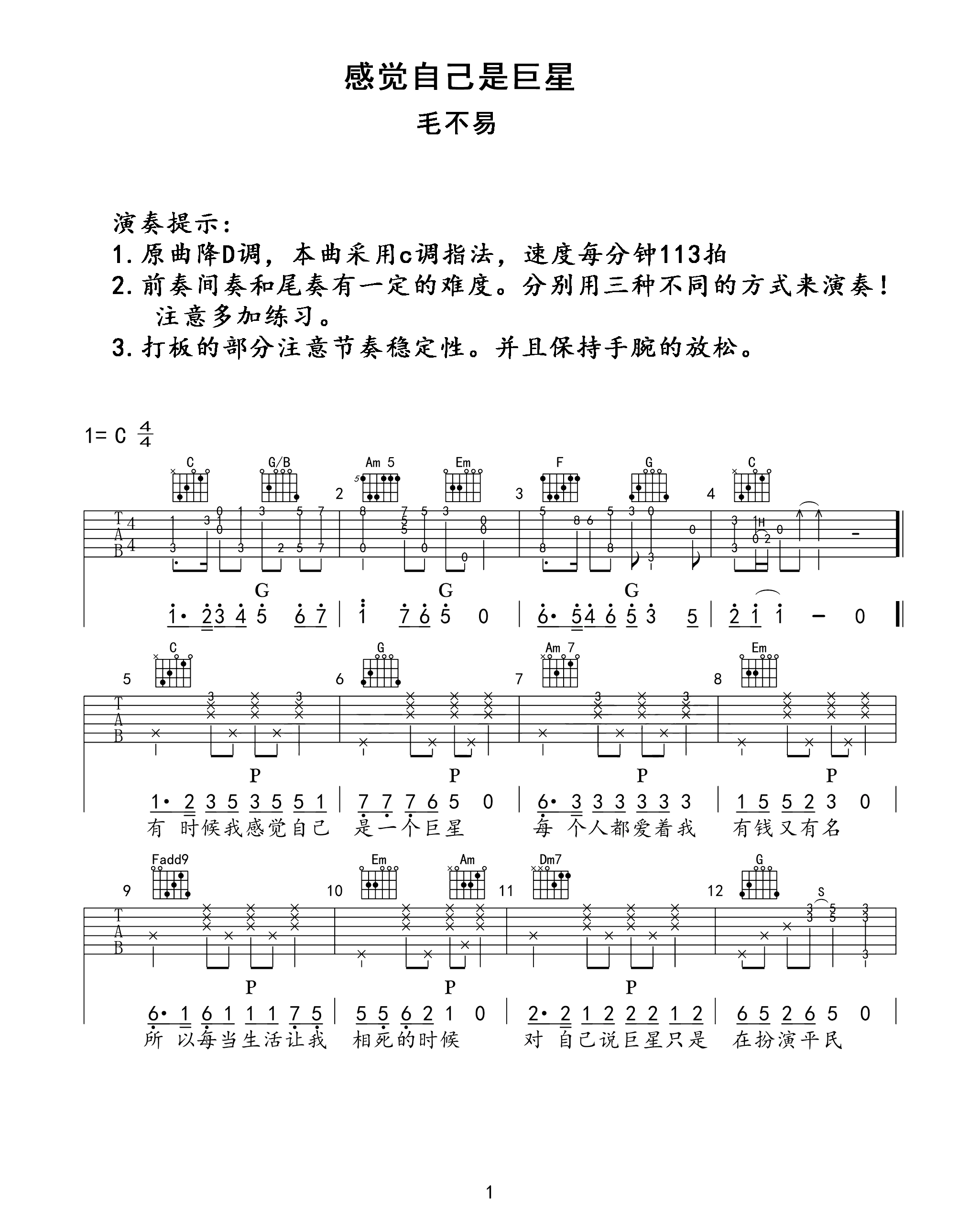 吉他谱 | 热门弹唱《感觉自己是巨星》