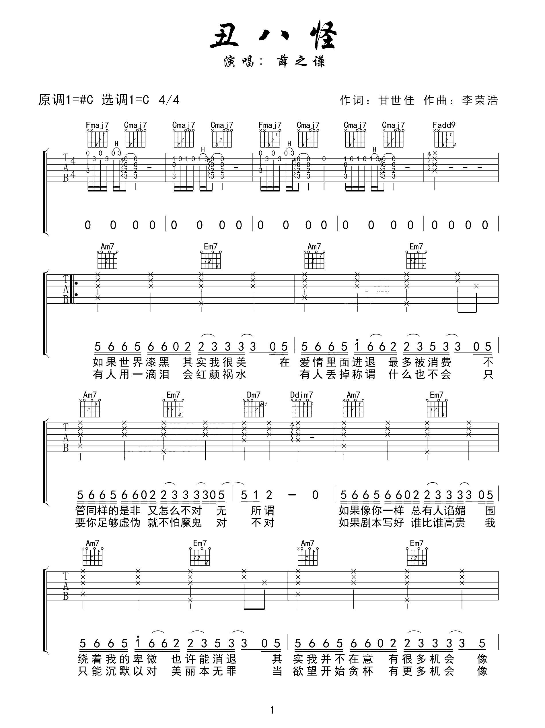 李荣浩《李白》吉他谱 C调扫弦版 弹唱