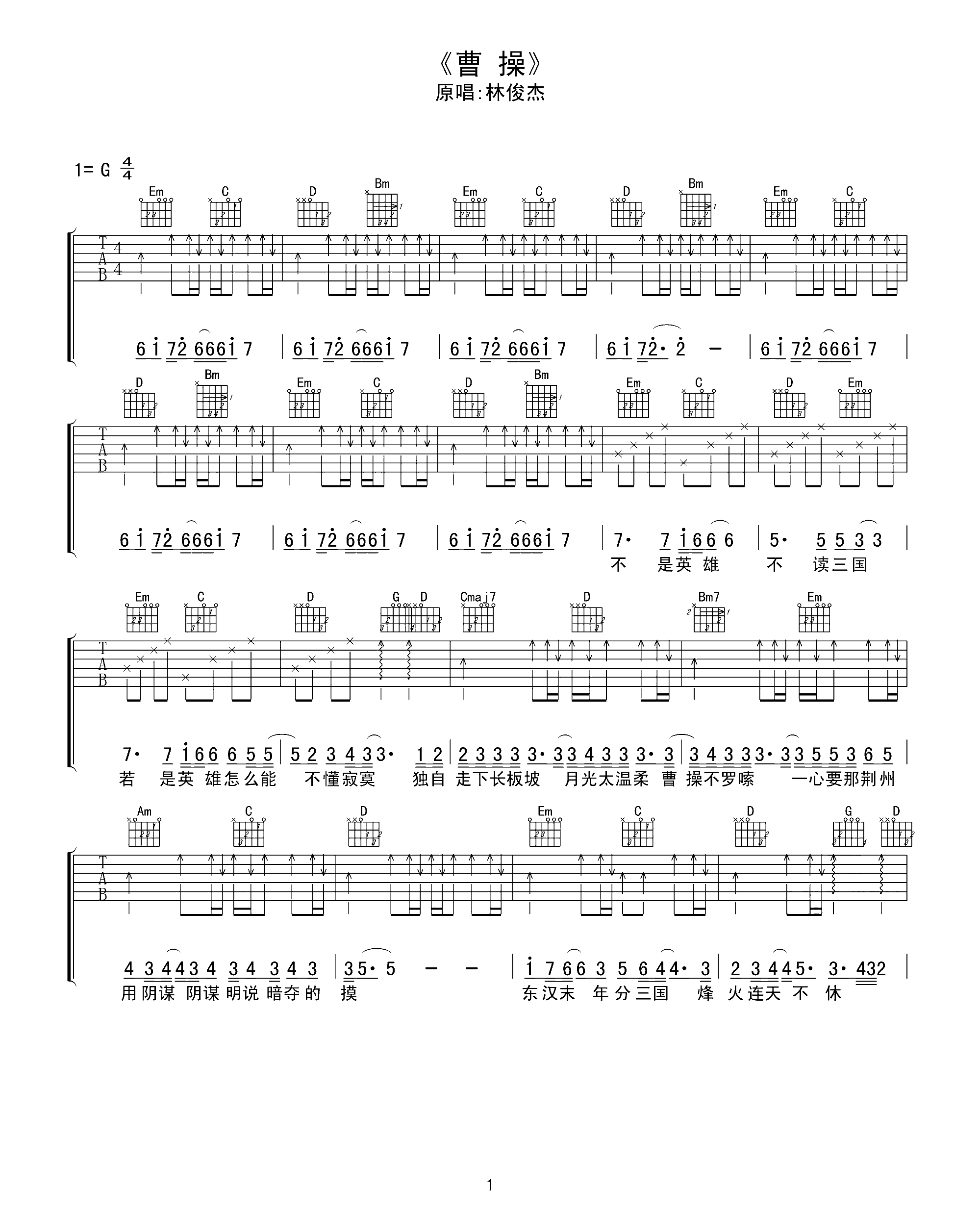 吉他谱 | 热门弹唱《曹操》