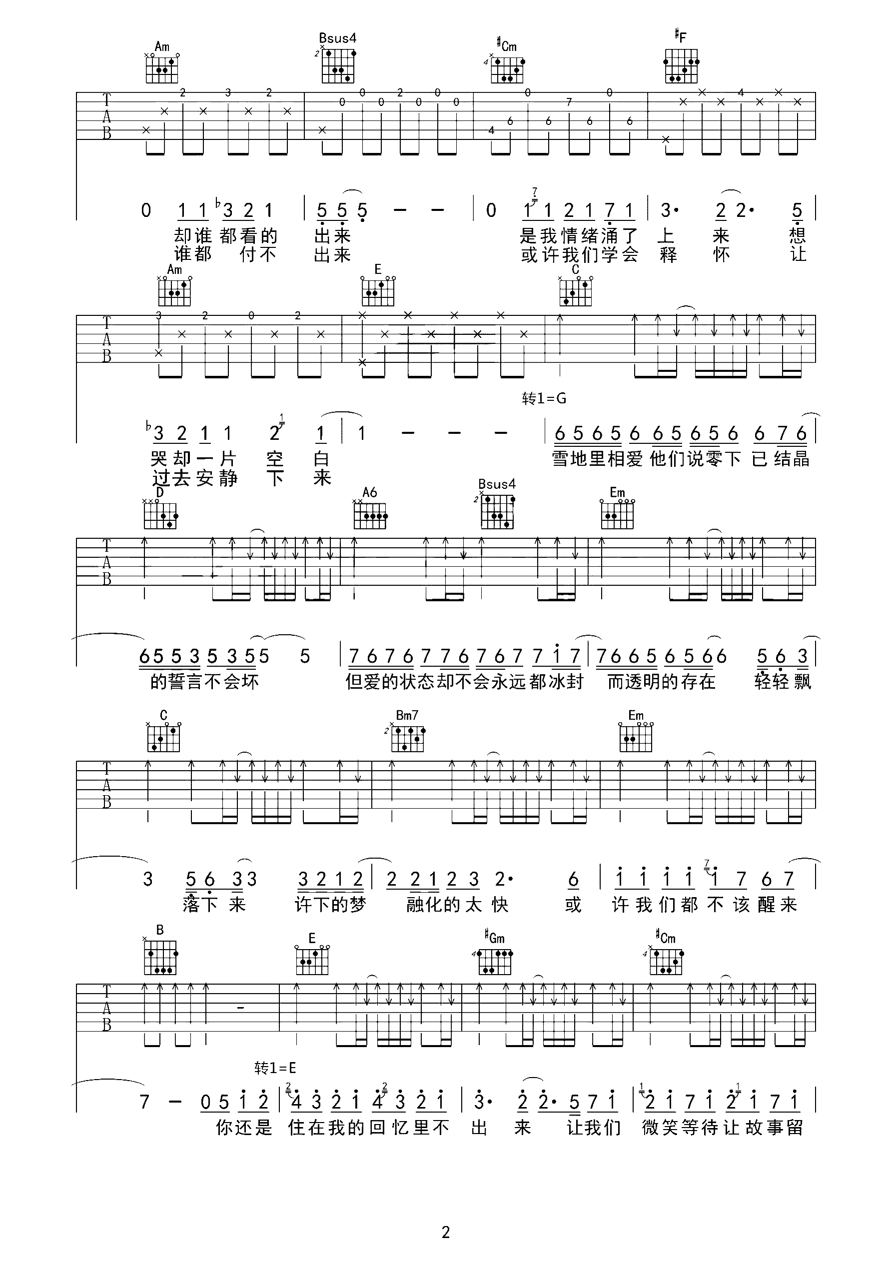 爱情转移 原版吉他谱