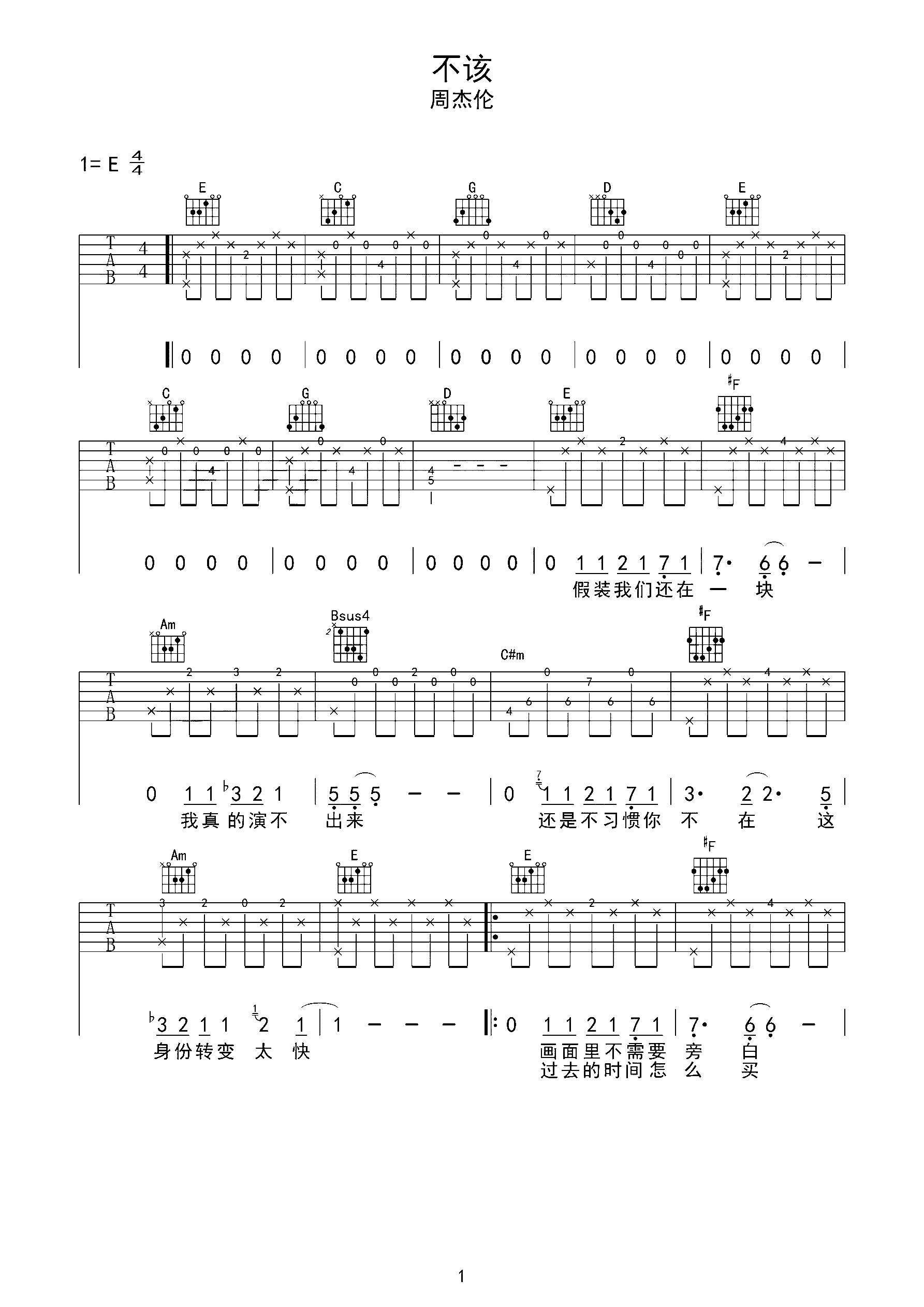 吉他谱 | 热门弹唱《不该》