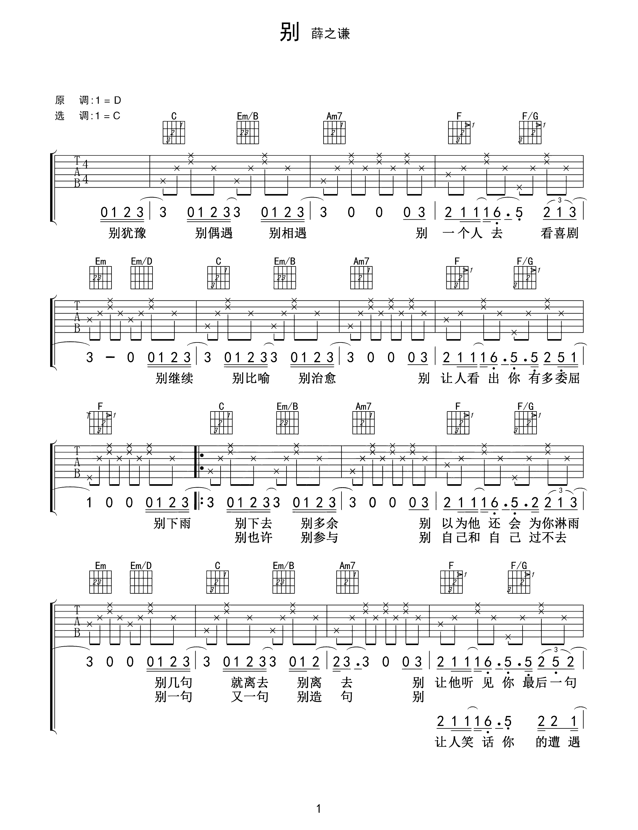 忽然之间吉他谱_莫文蔚_C调_弹唱谱