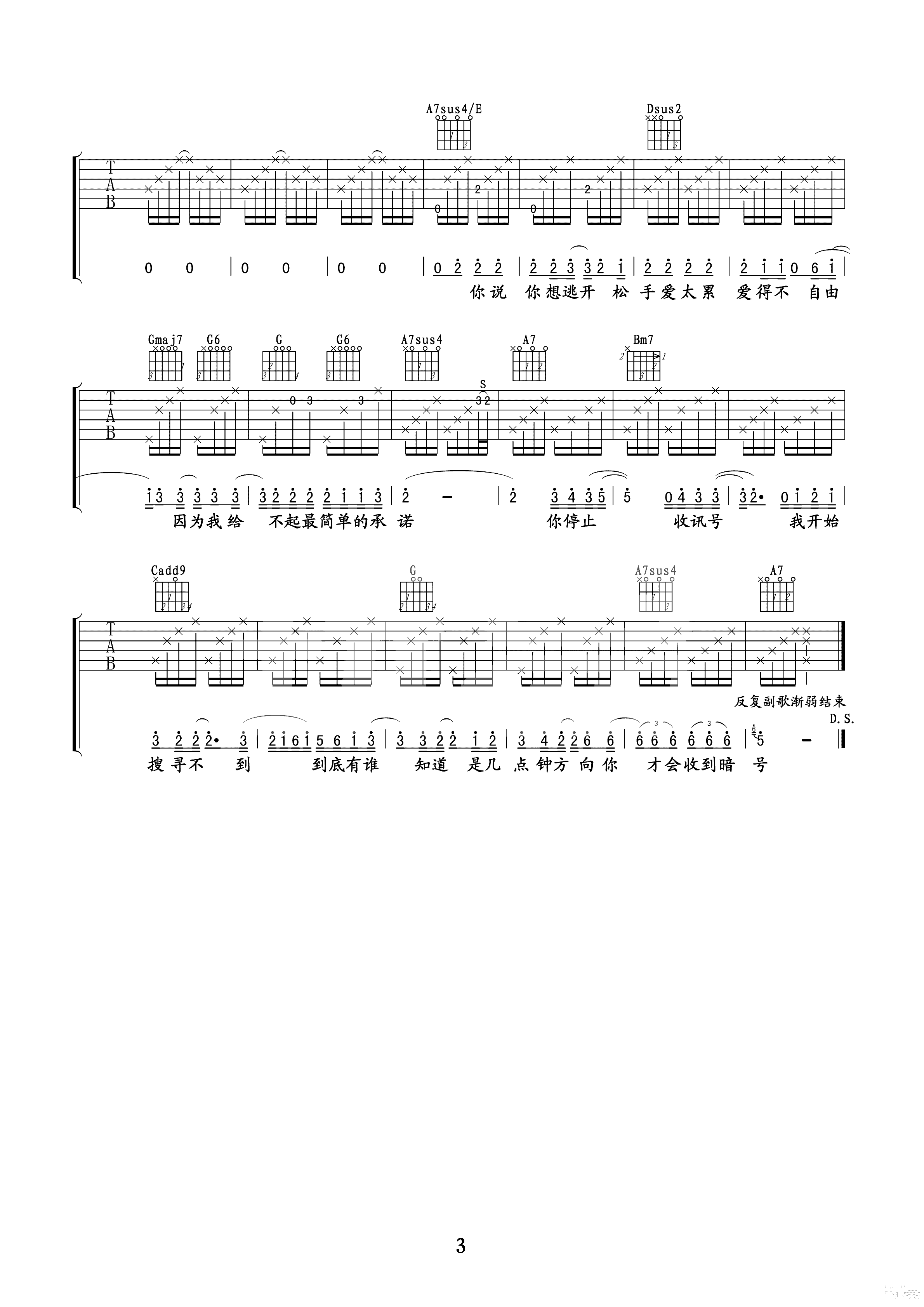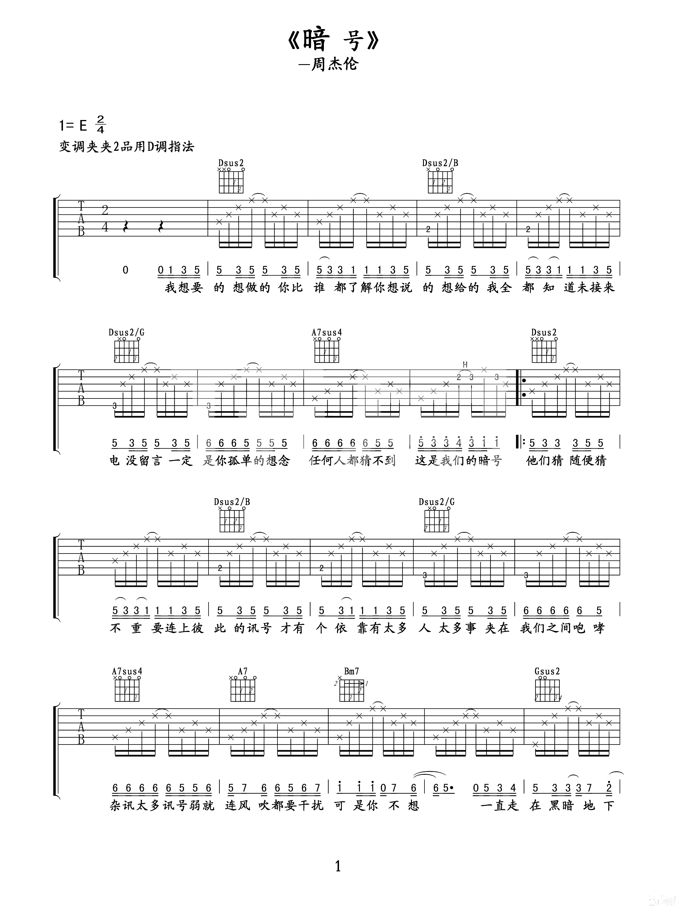吉他谱 | 热门弹唱《暗号》