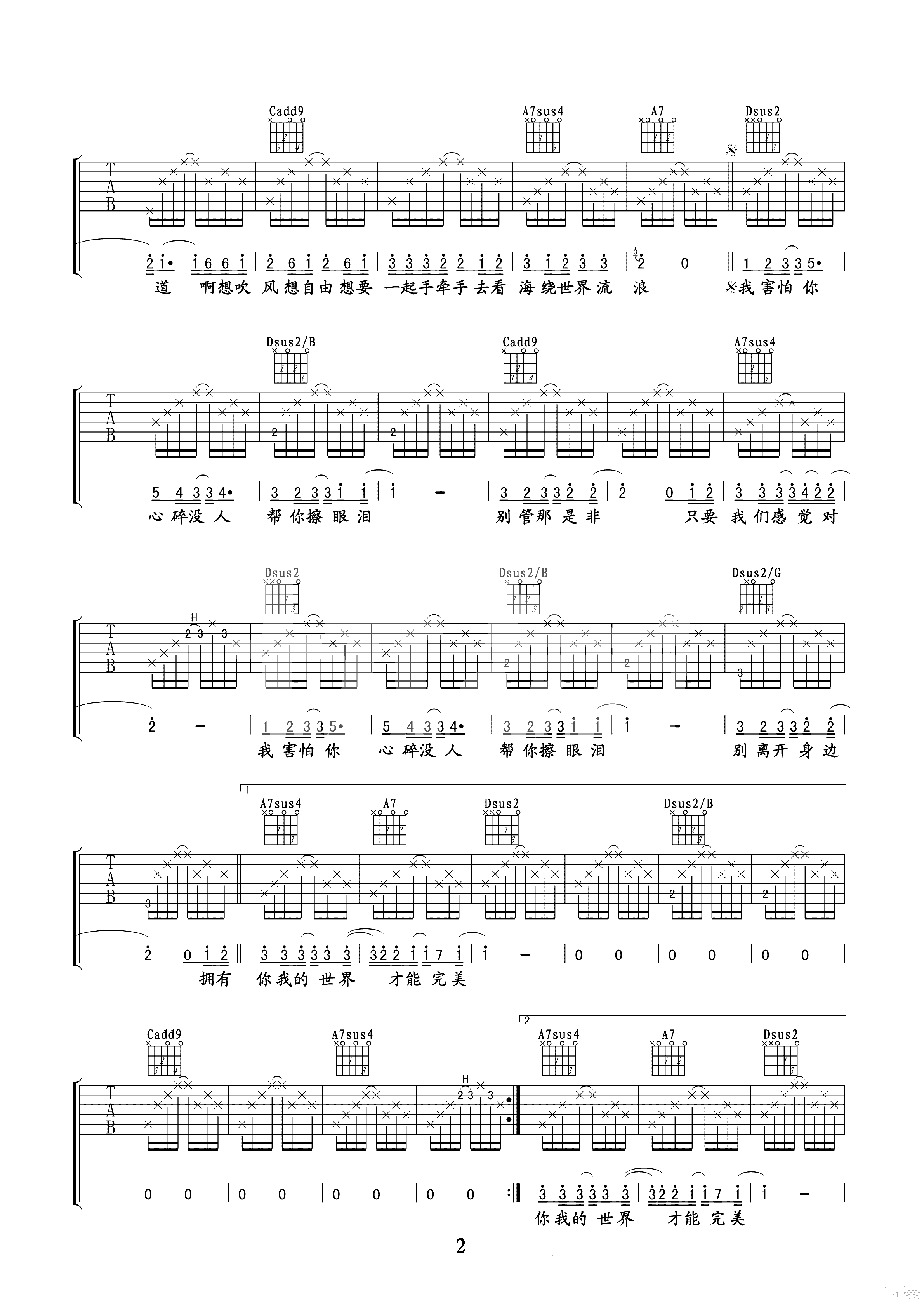 朋友别哭吉他