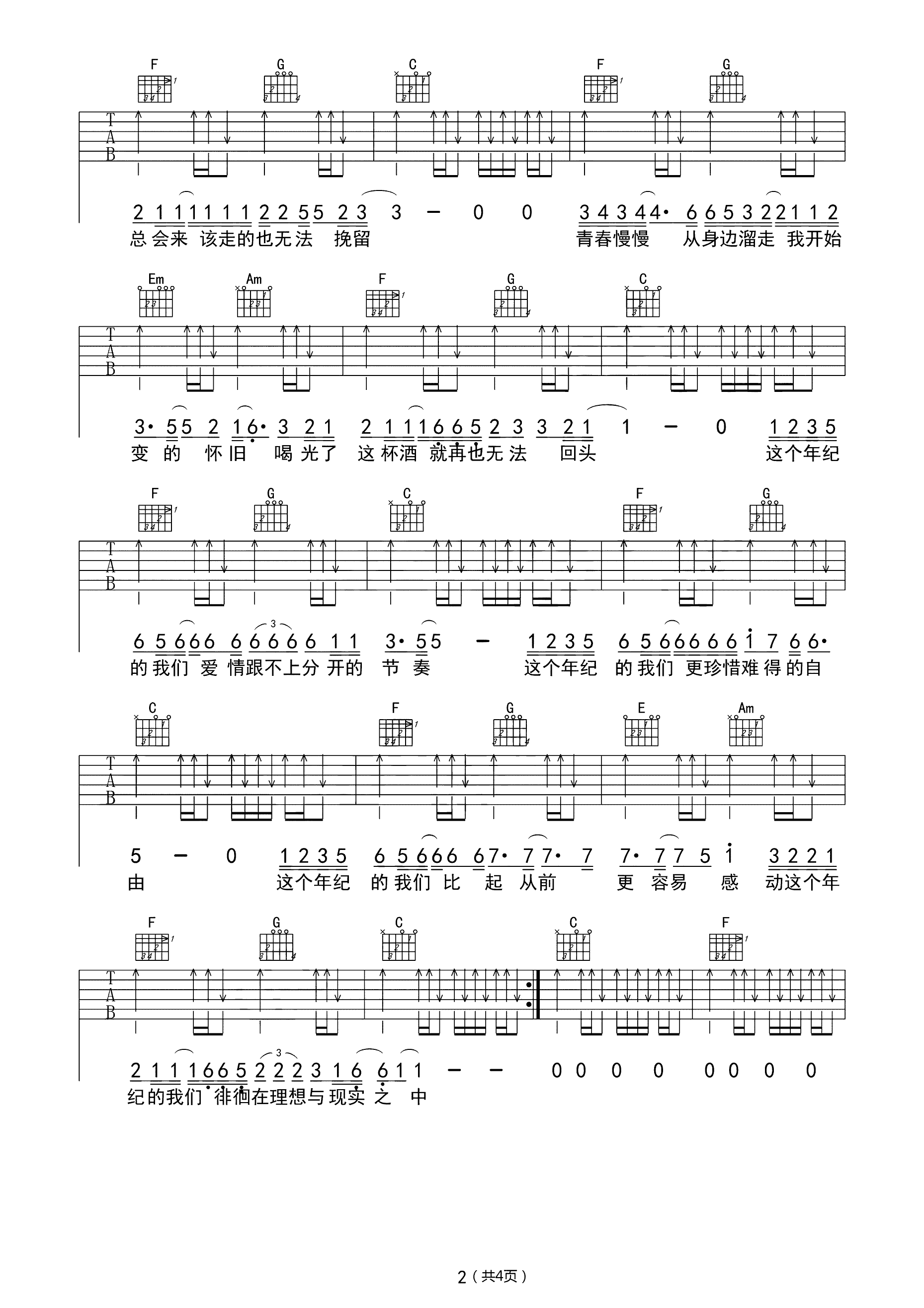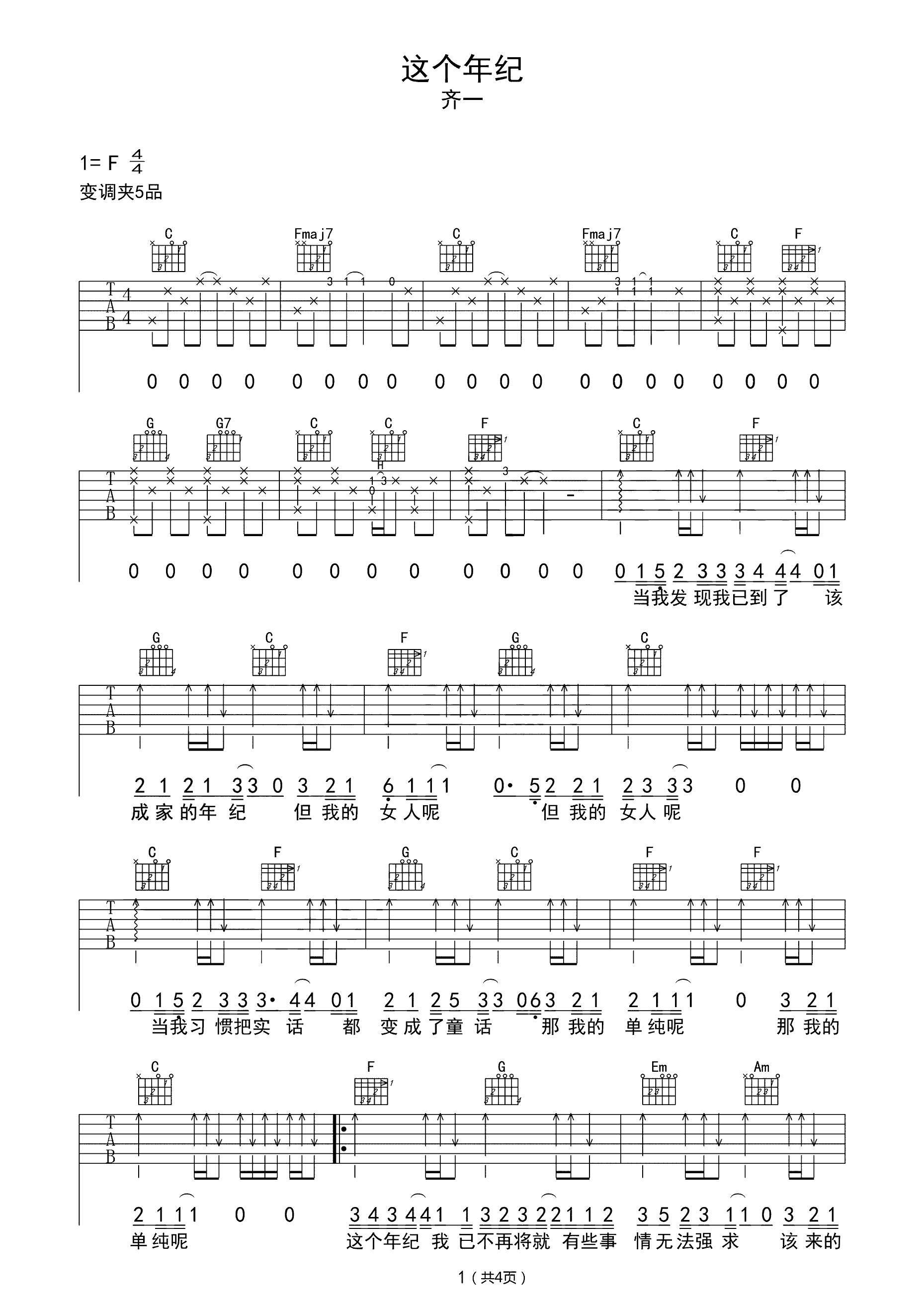 毛不易《一荤一素》吉他谱_C调原版_弹