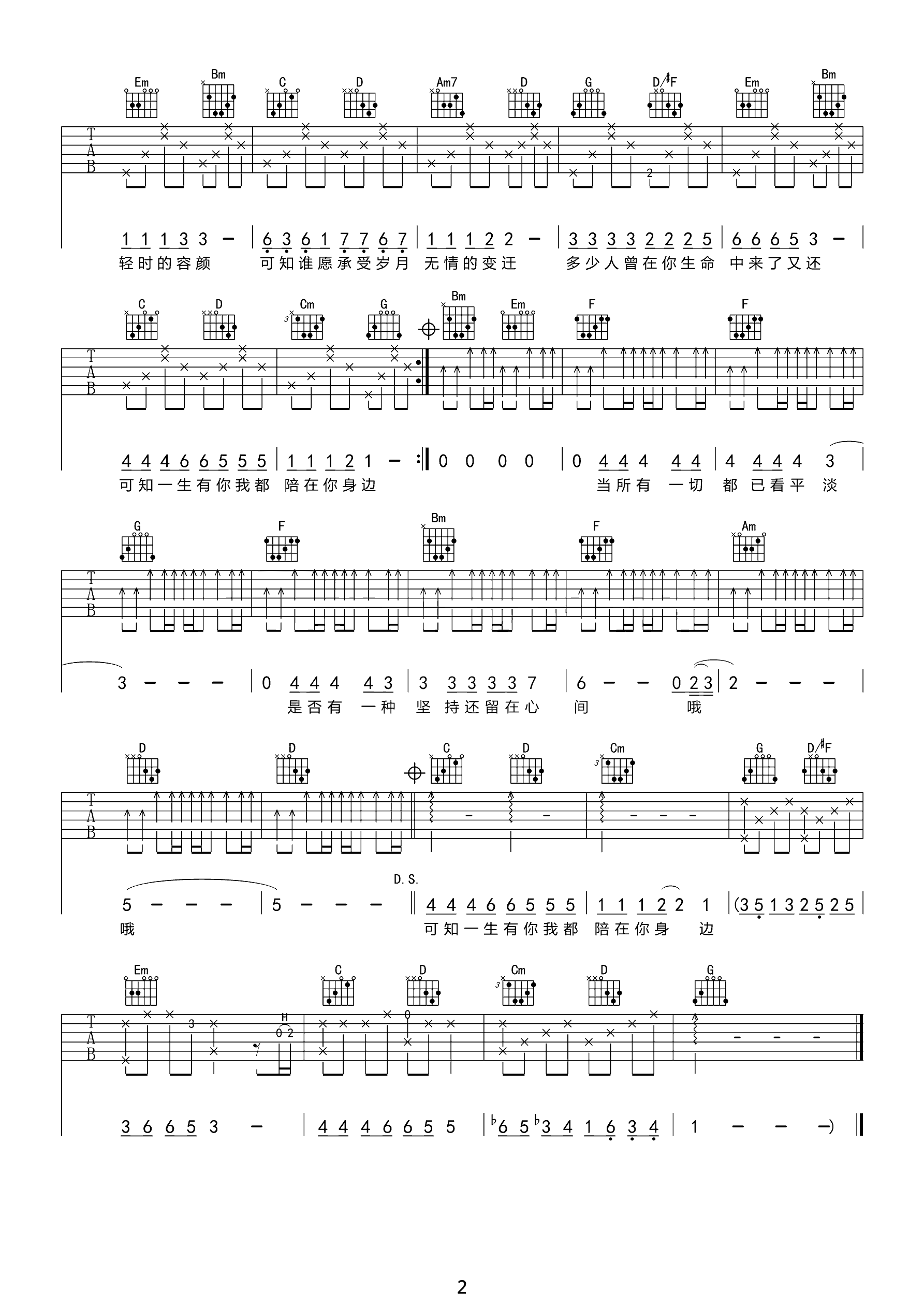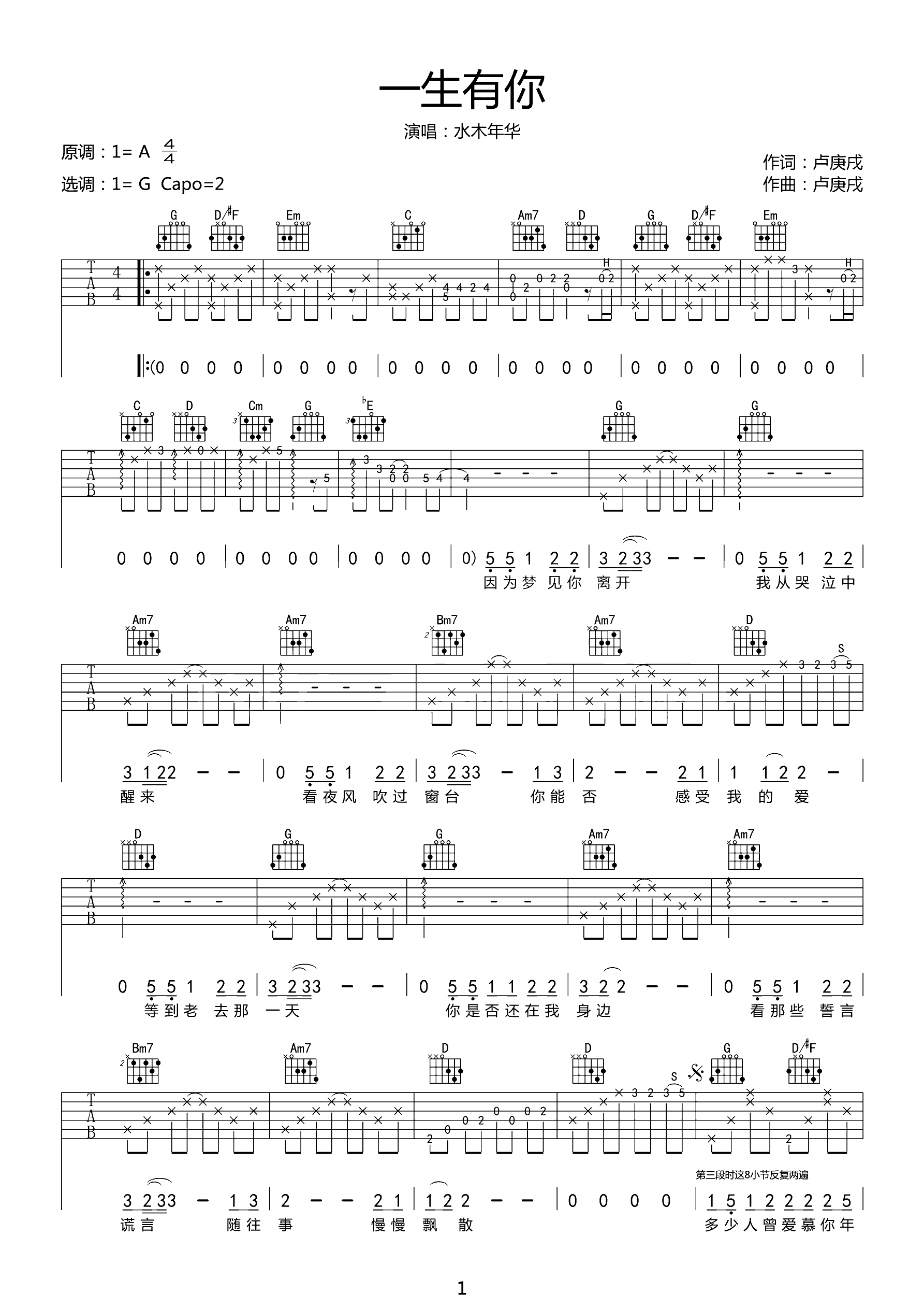 安来宁《难得》吉他谱_G调_弹唱六线谱_