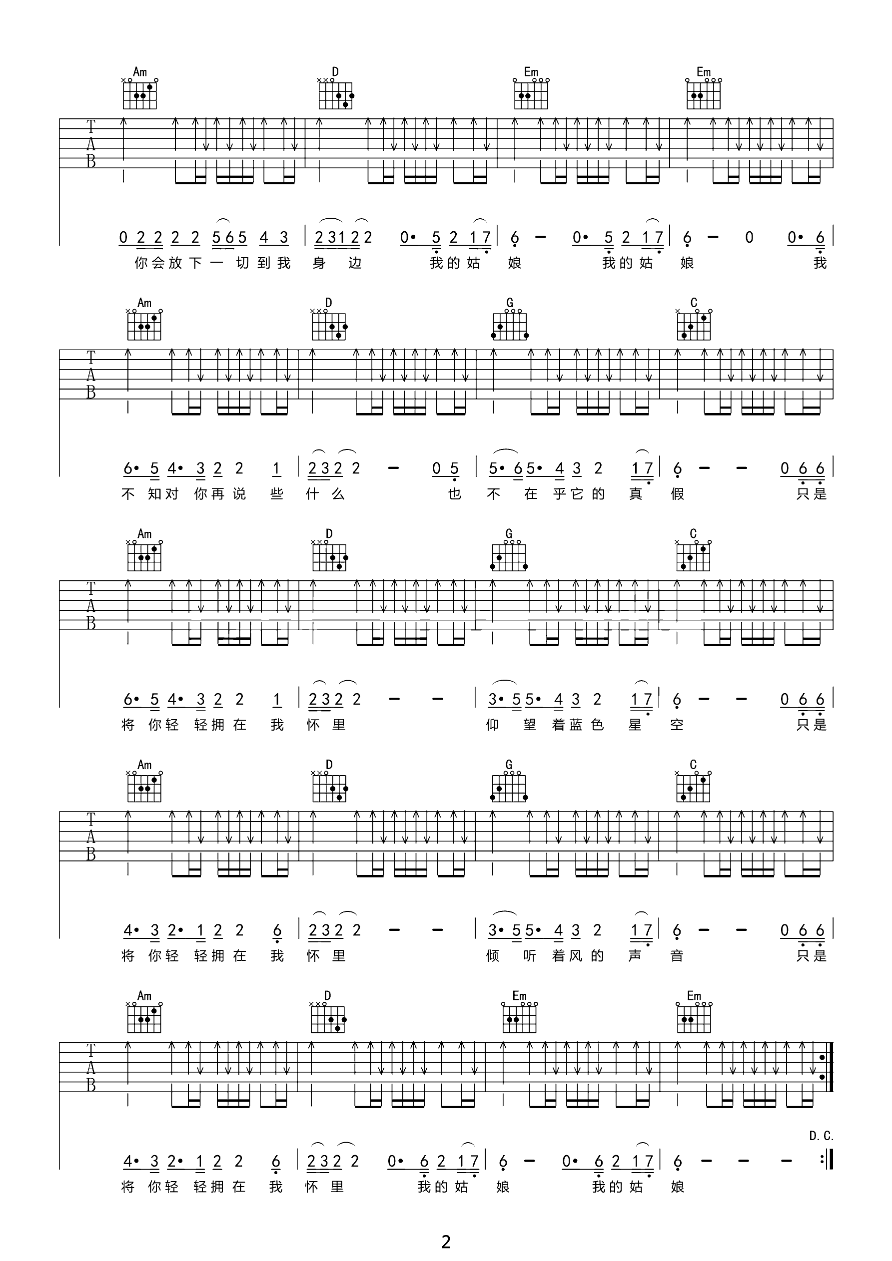 凌晨三点吉他谱 陈硕子 C调弹唱谱 副歌