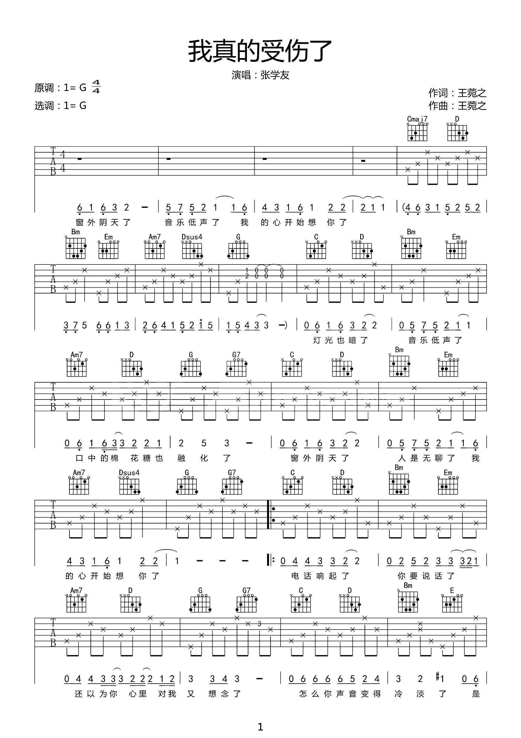 吉他谱 | 热门弹唱《我真的受伤了》