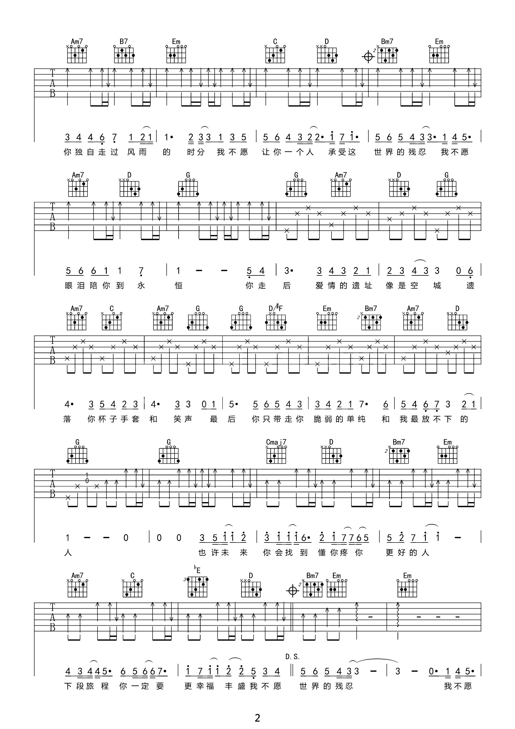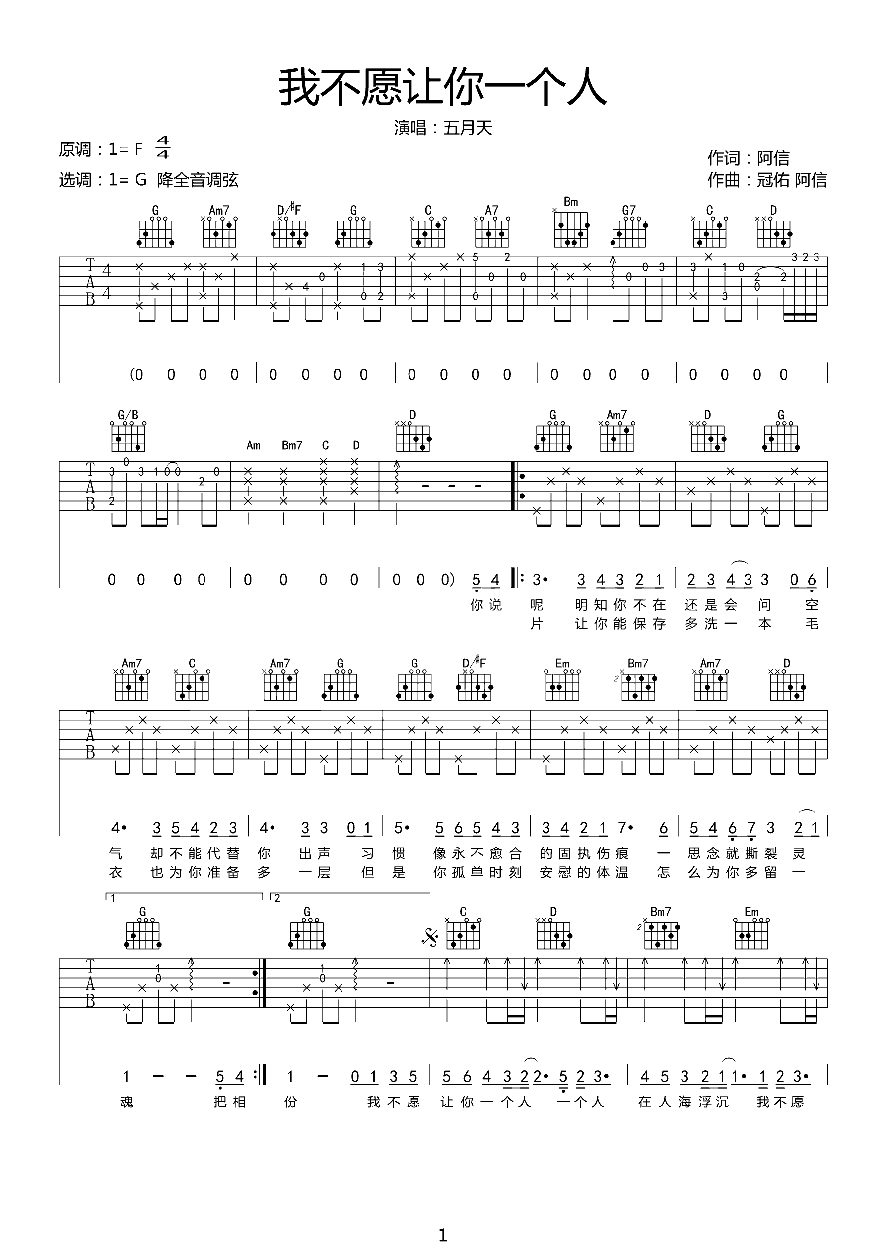 吉他谱 | 热门弹唱《我不愿让你一个人》