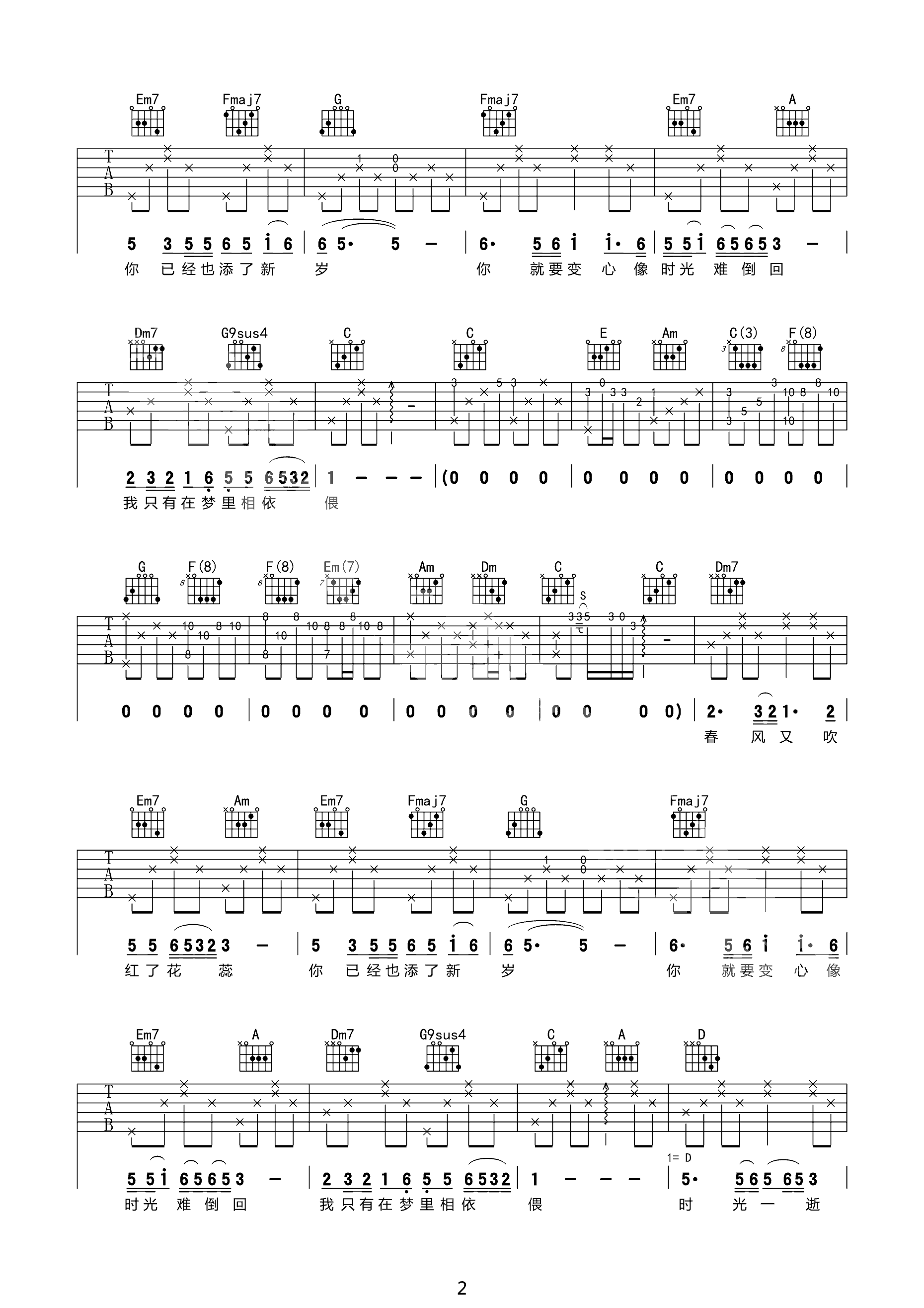 青春与爱情吉他谱