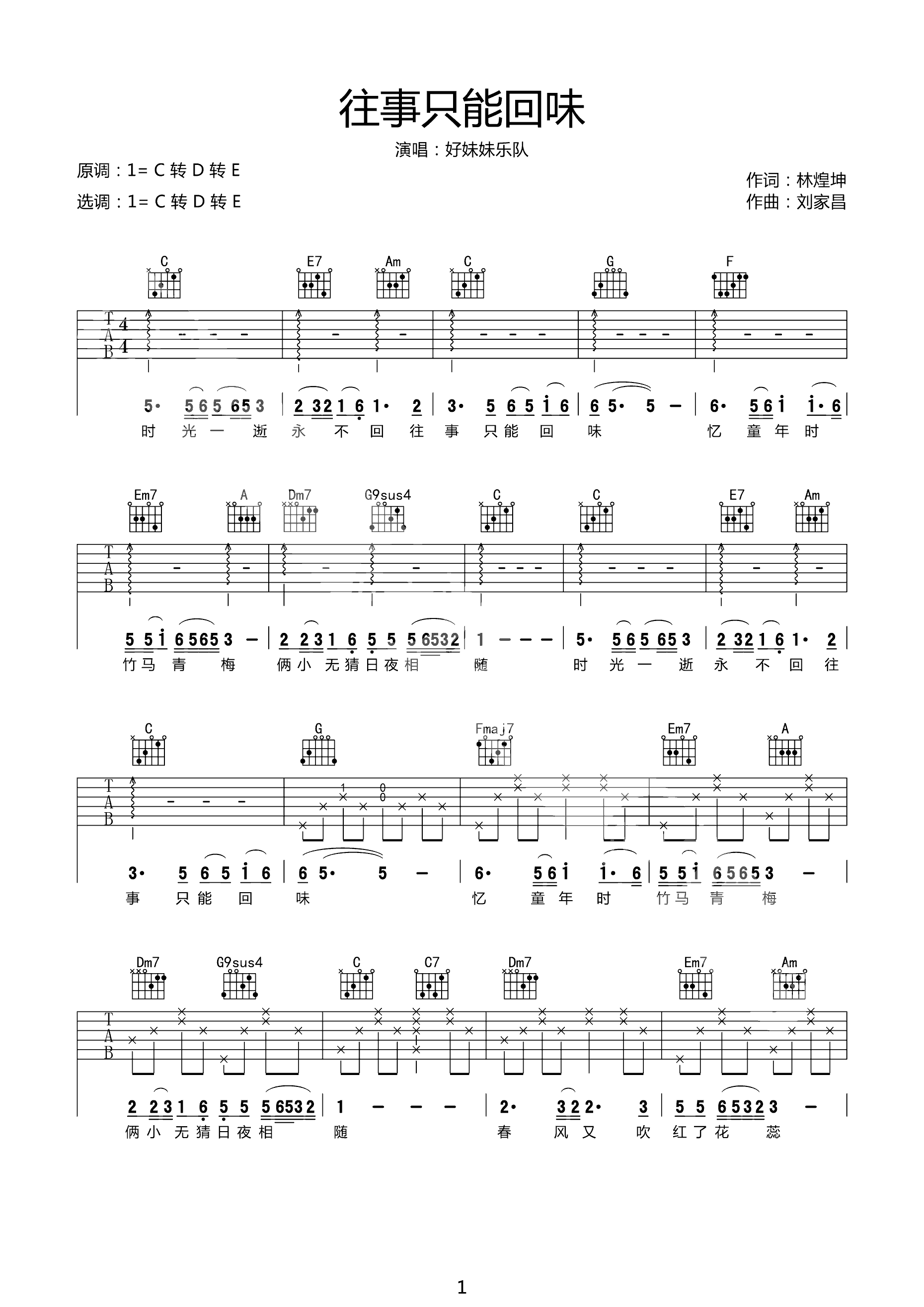 吉他谱 | 热门弹唱《往事只能回味》