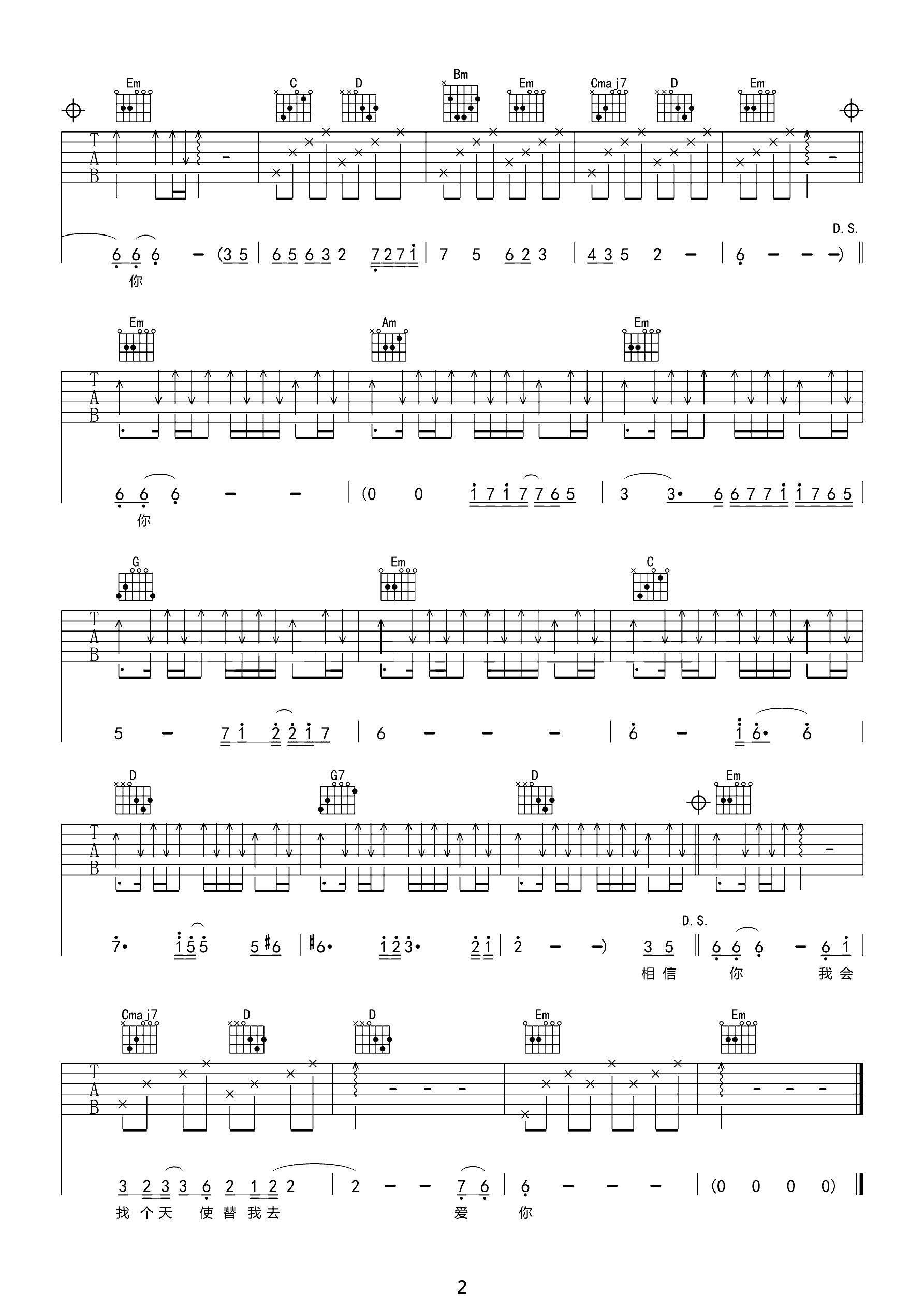 情儿吉他谱_二手玫瑰_C调六线谱_吉他弹