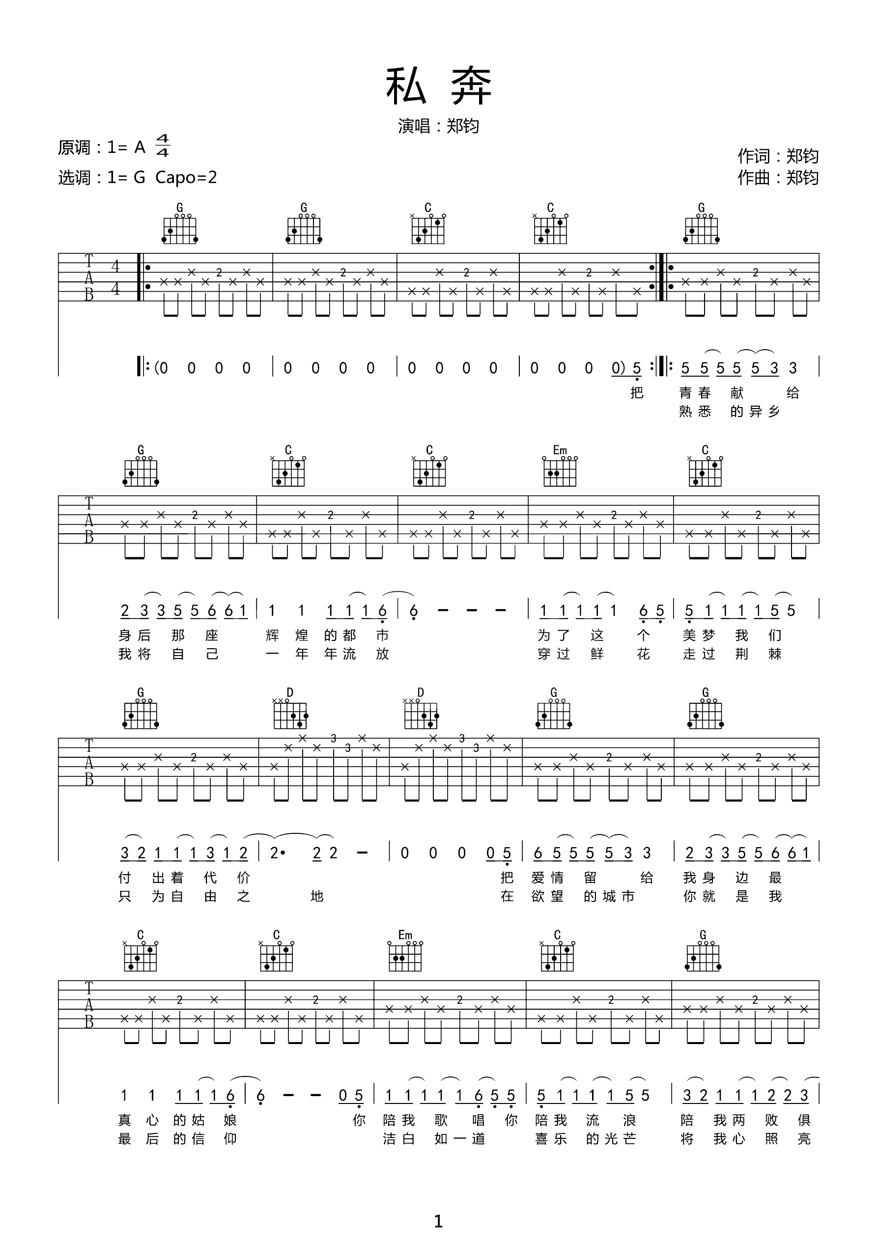 陈粒《自渡》吉他谱_弹唱谱_自渡六线谱