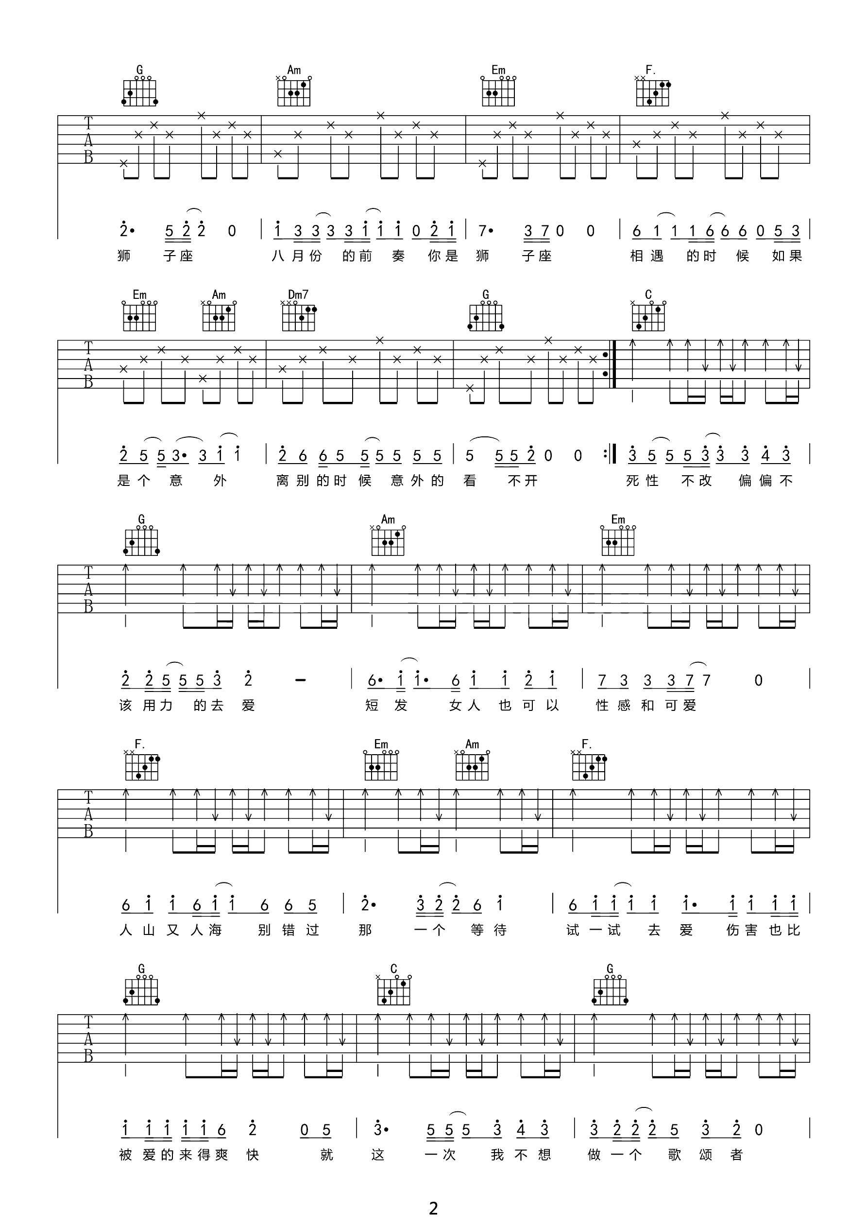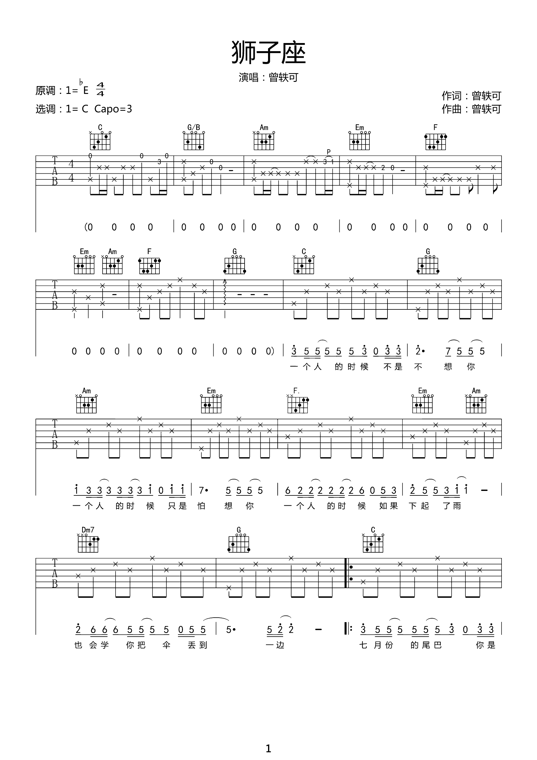 谢震廷《灯光》吉他谱 高清图片谱 弹唱