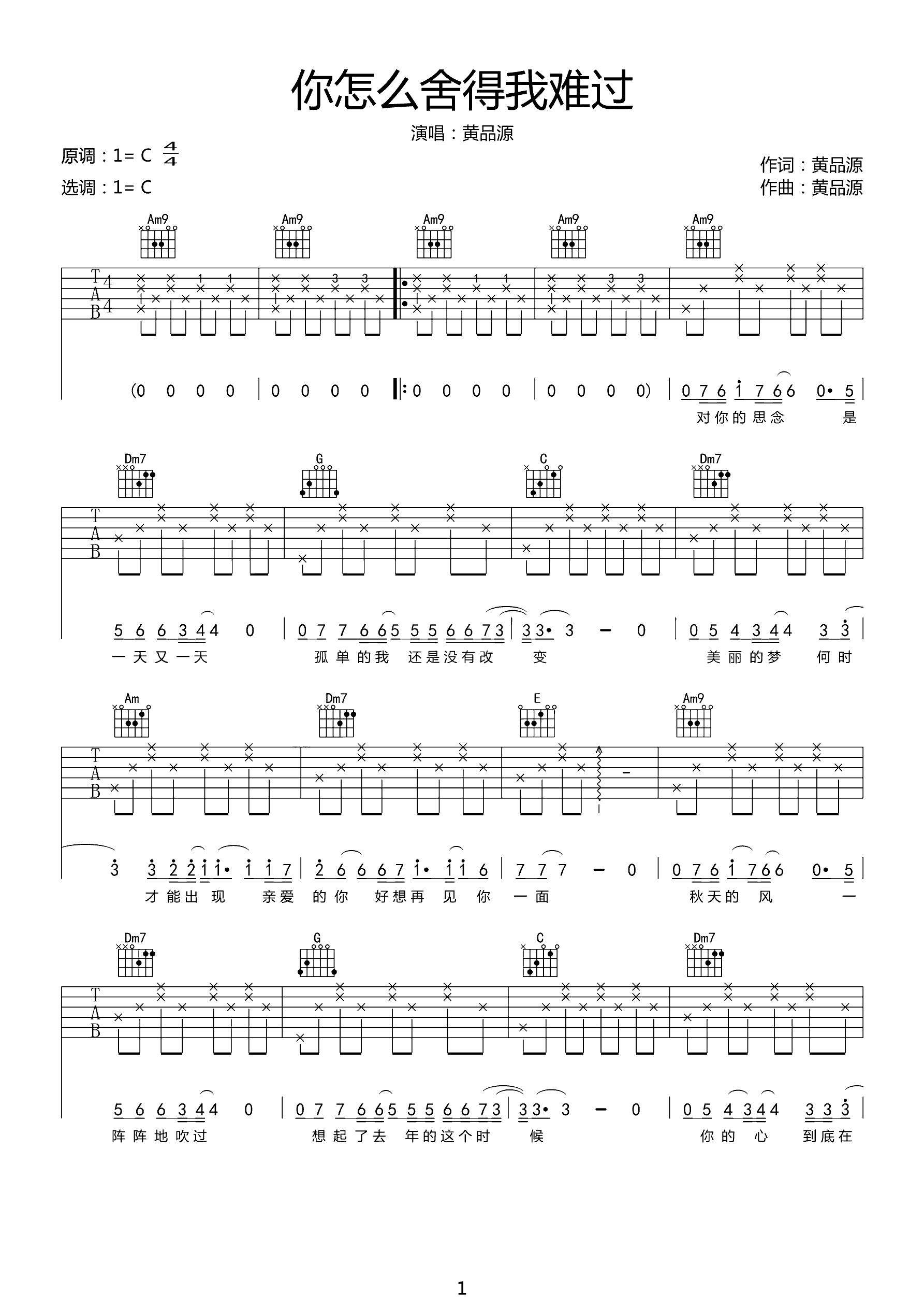 吉他谱 | 热门弹唱《你怎么舍得我难过》