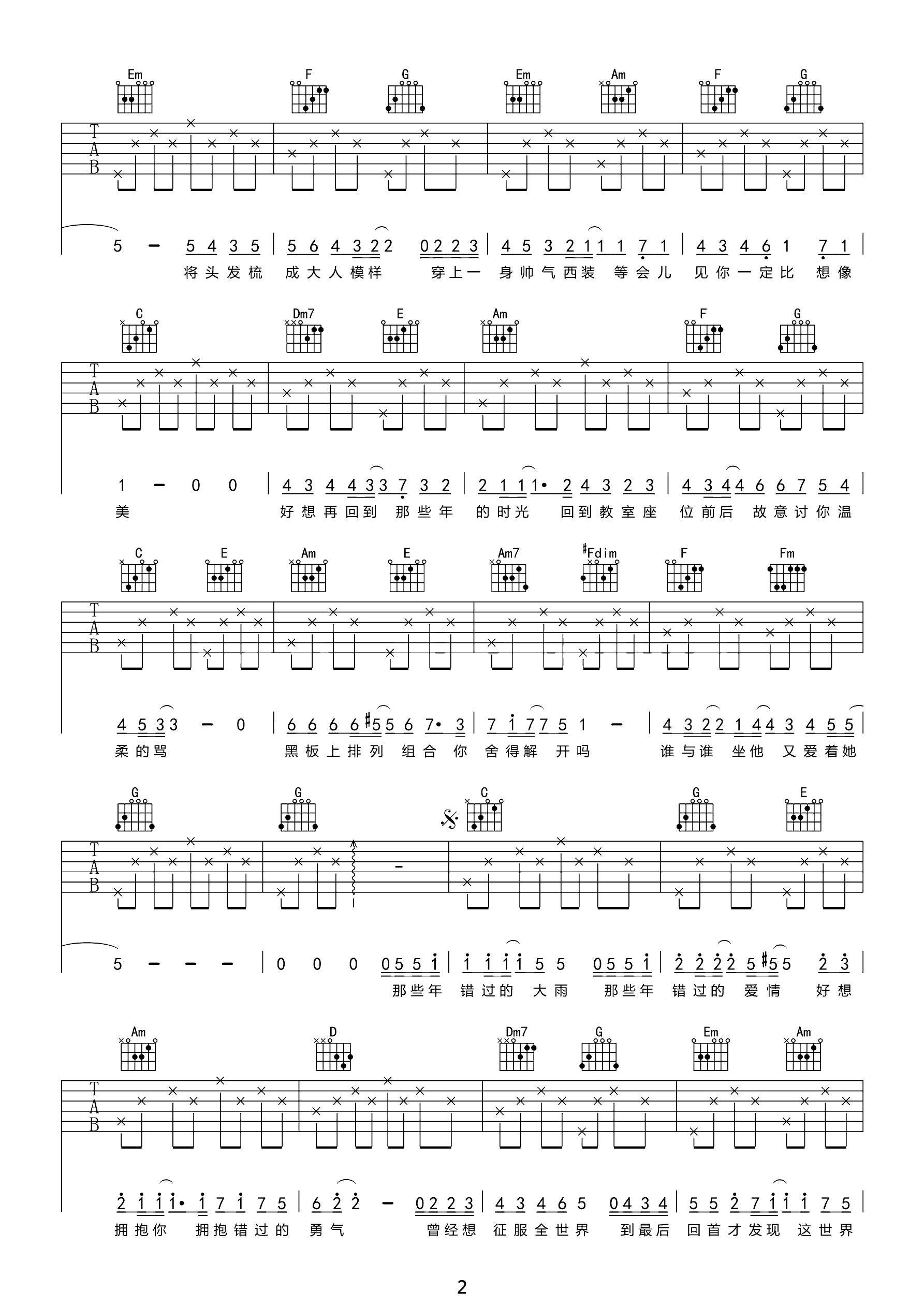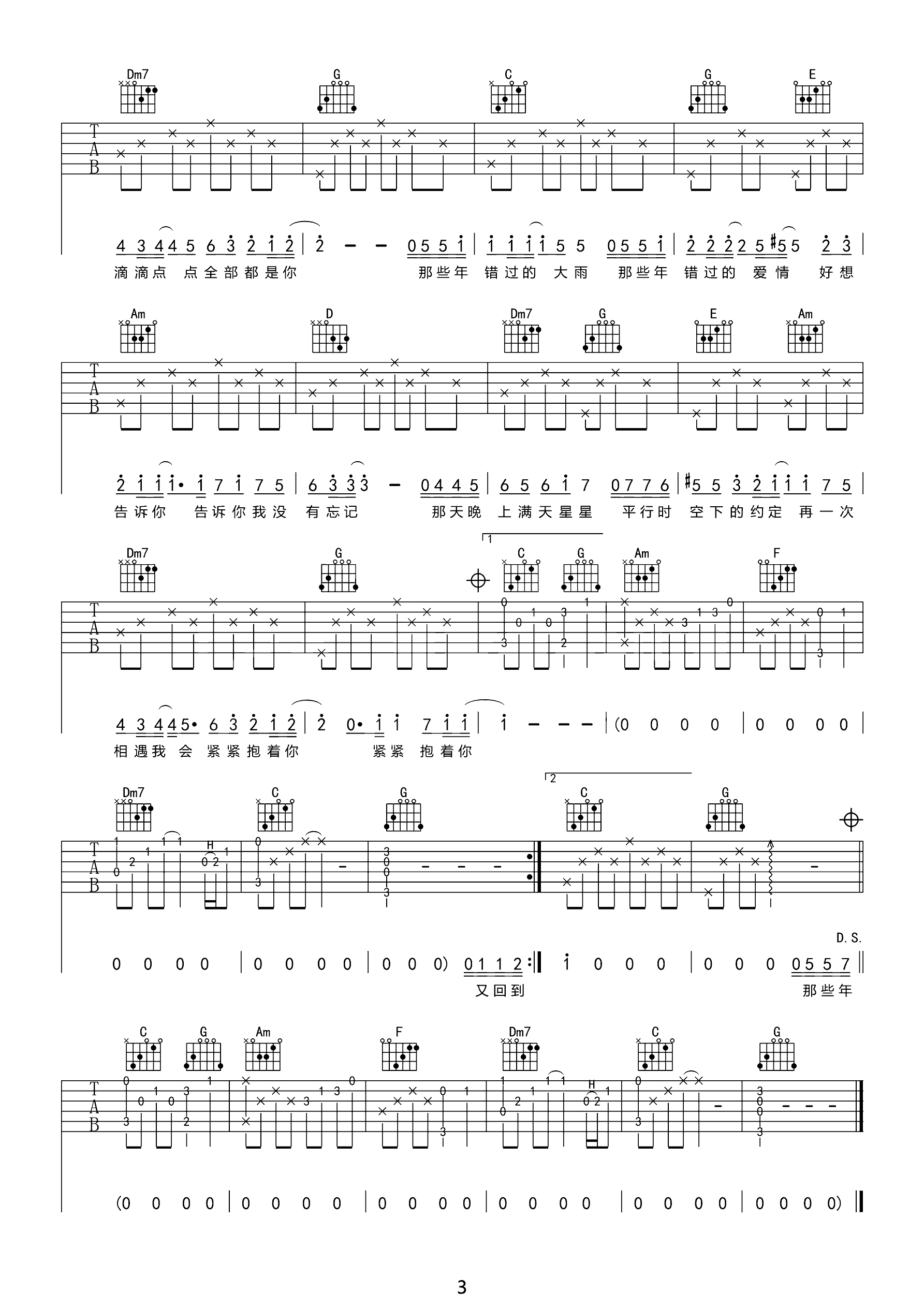 时间煮雨吉他谱 郁可唯 C调弹唱谱 高清