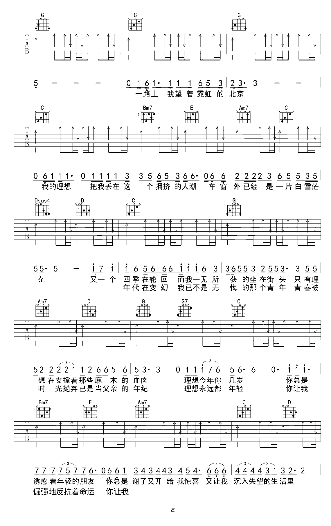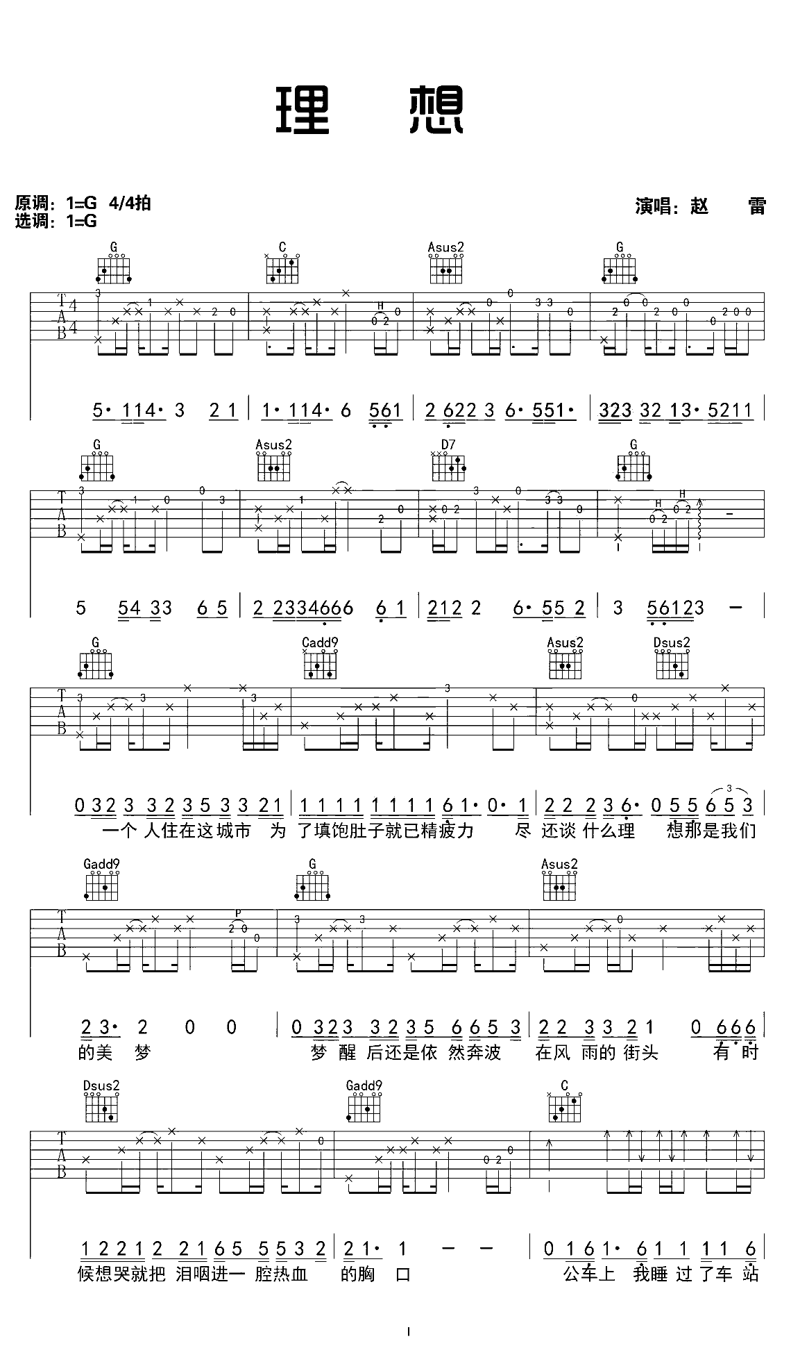 吉他谱 | 热门弹唱《理想》