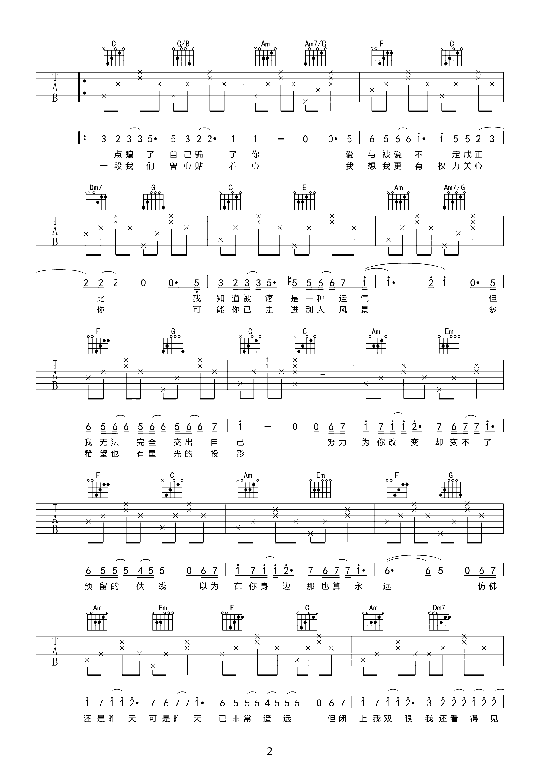 明天你好吉他谱 牛奶咖啡 C调简单版 弹