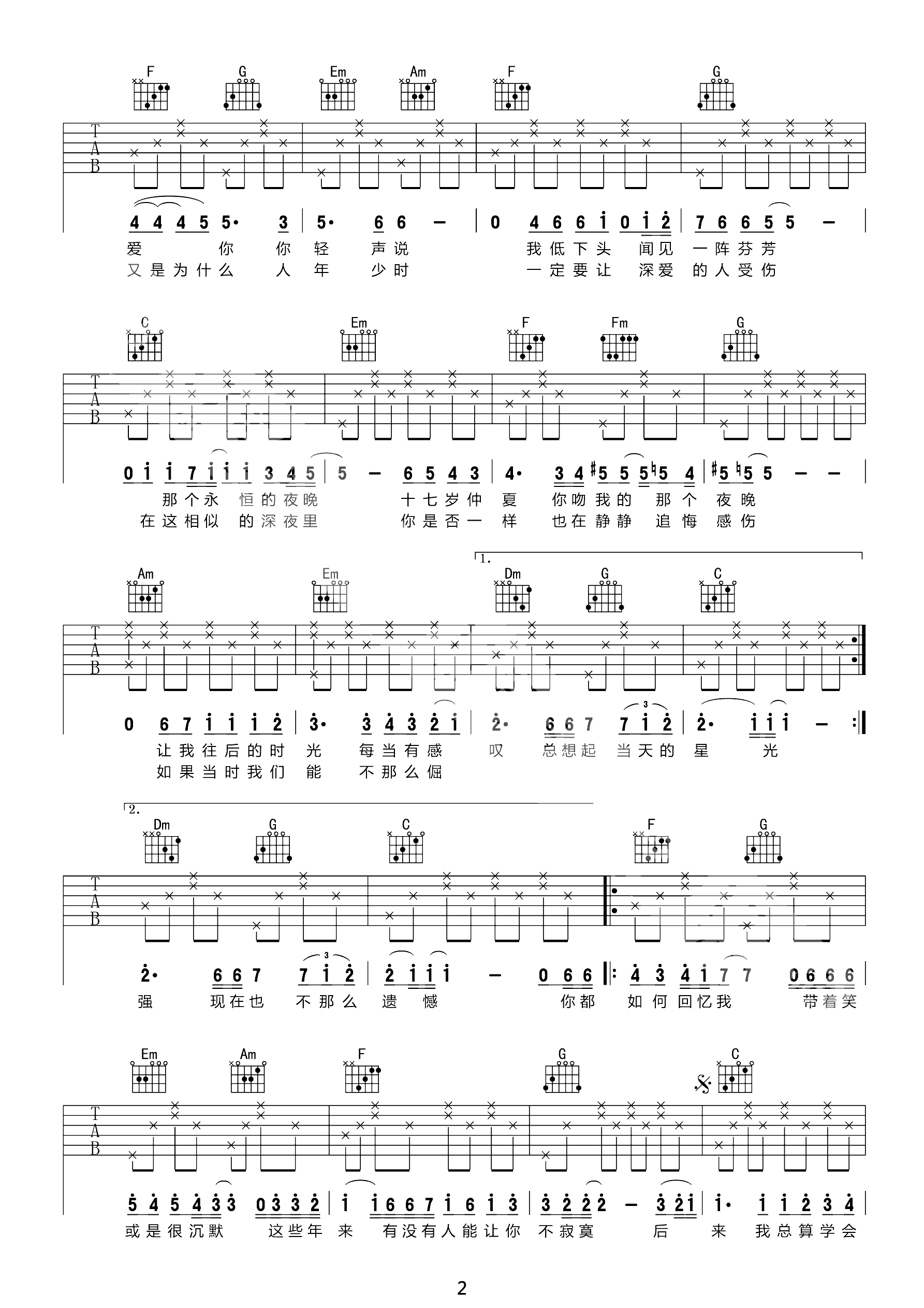 汪苏泷《忽而今夏》吉他谱_C调入门版_