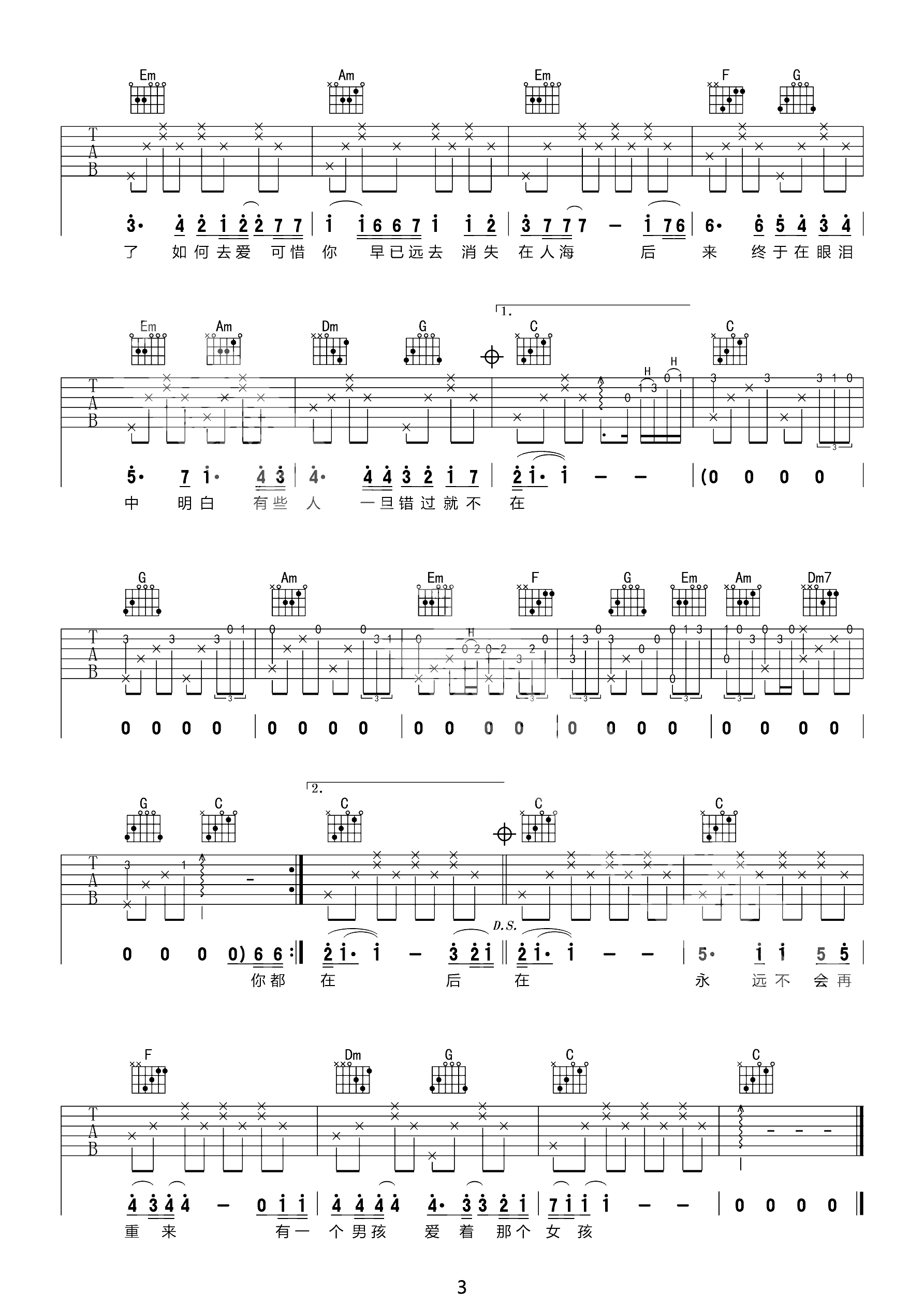 无限可能吉他谱 丢火车乐队 C调六线谱