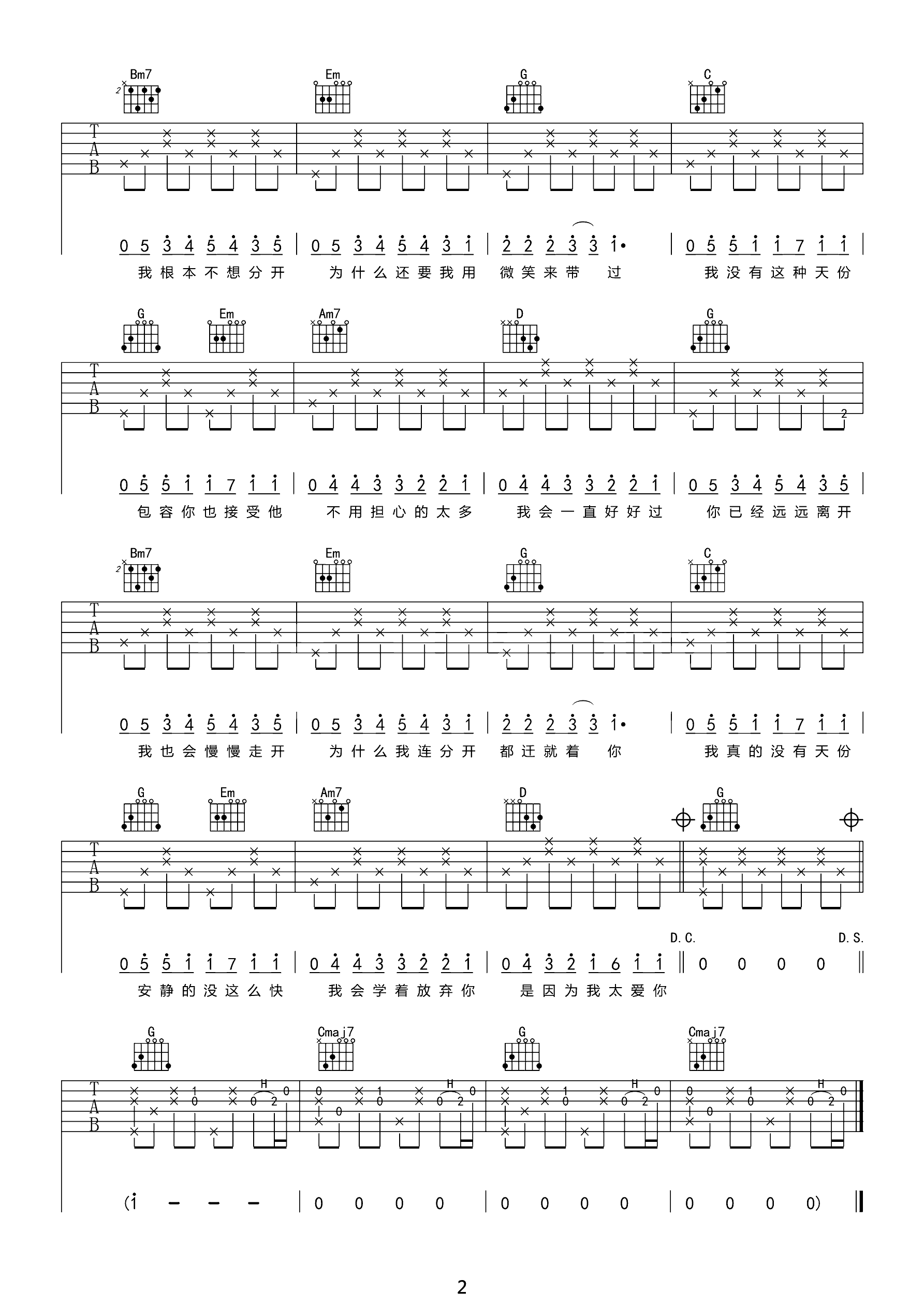 只要平凡吉他谱_张杰/张碧晨_带指弹前