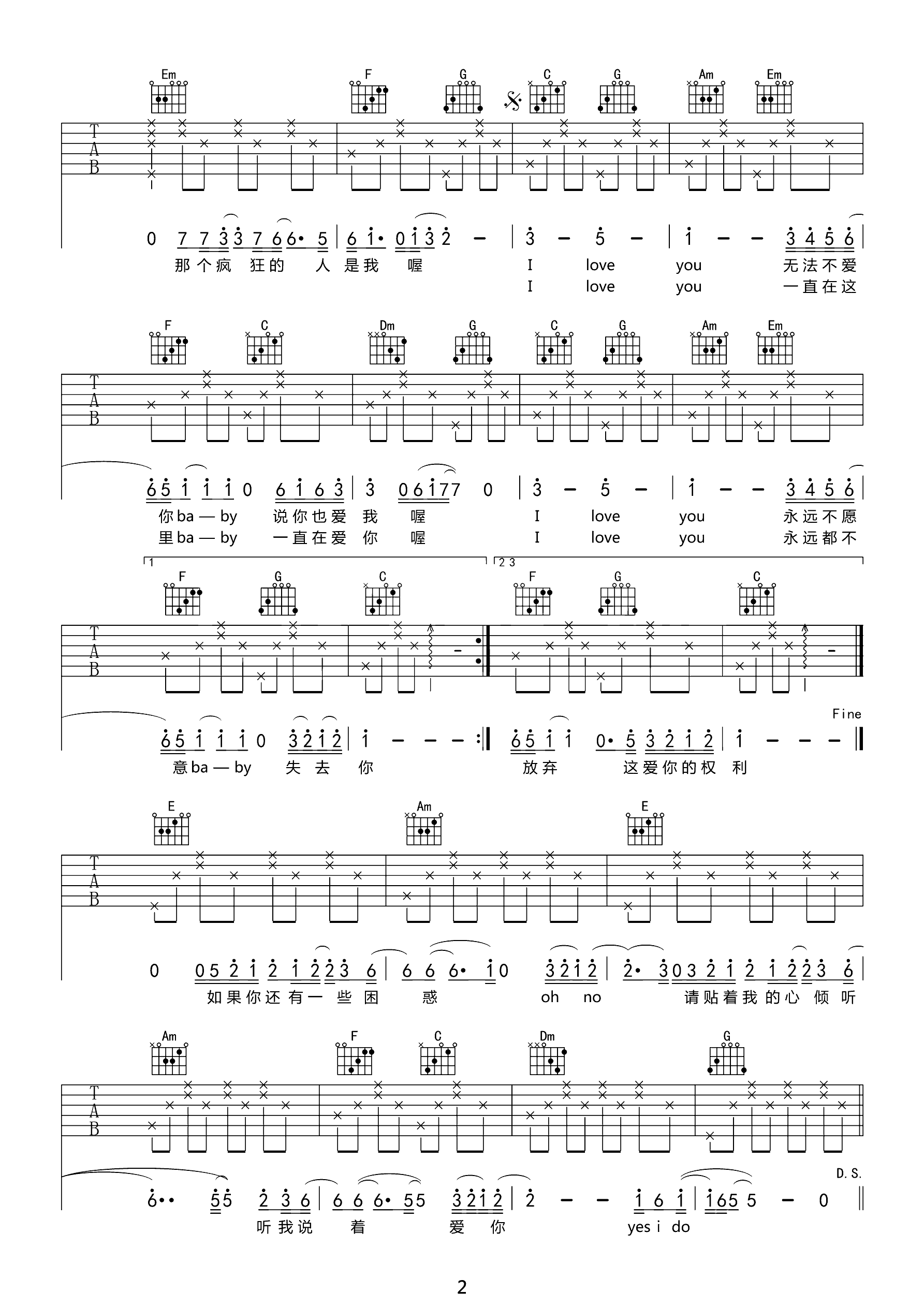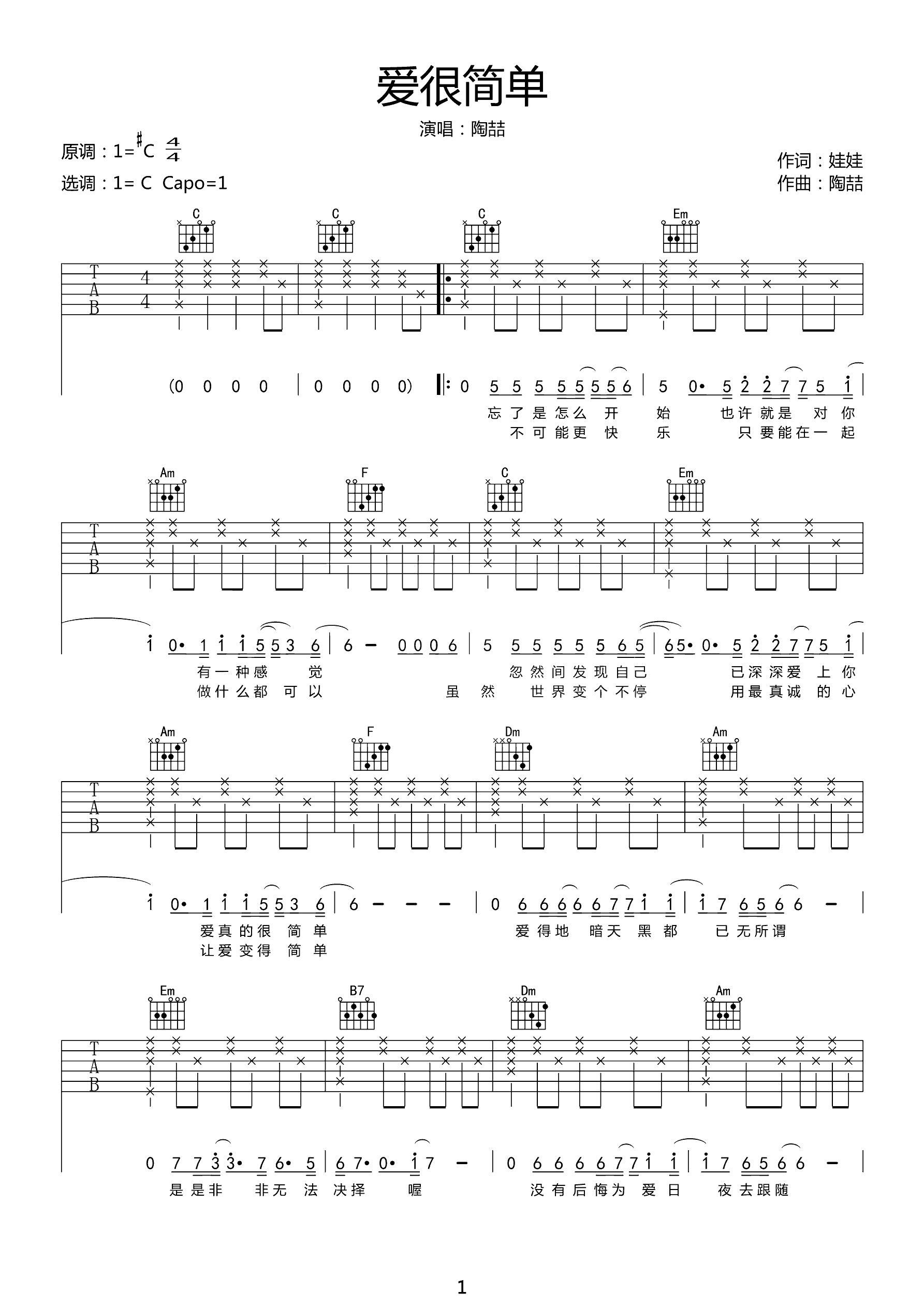 吉他谱 | 热门弹唱《爱很简单》