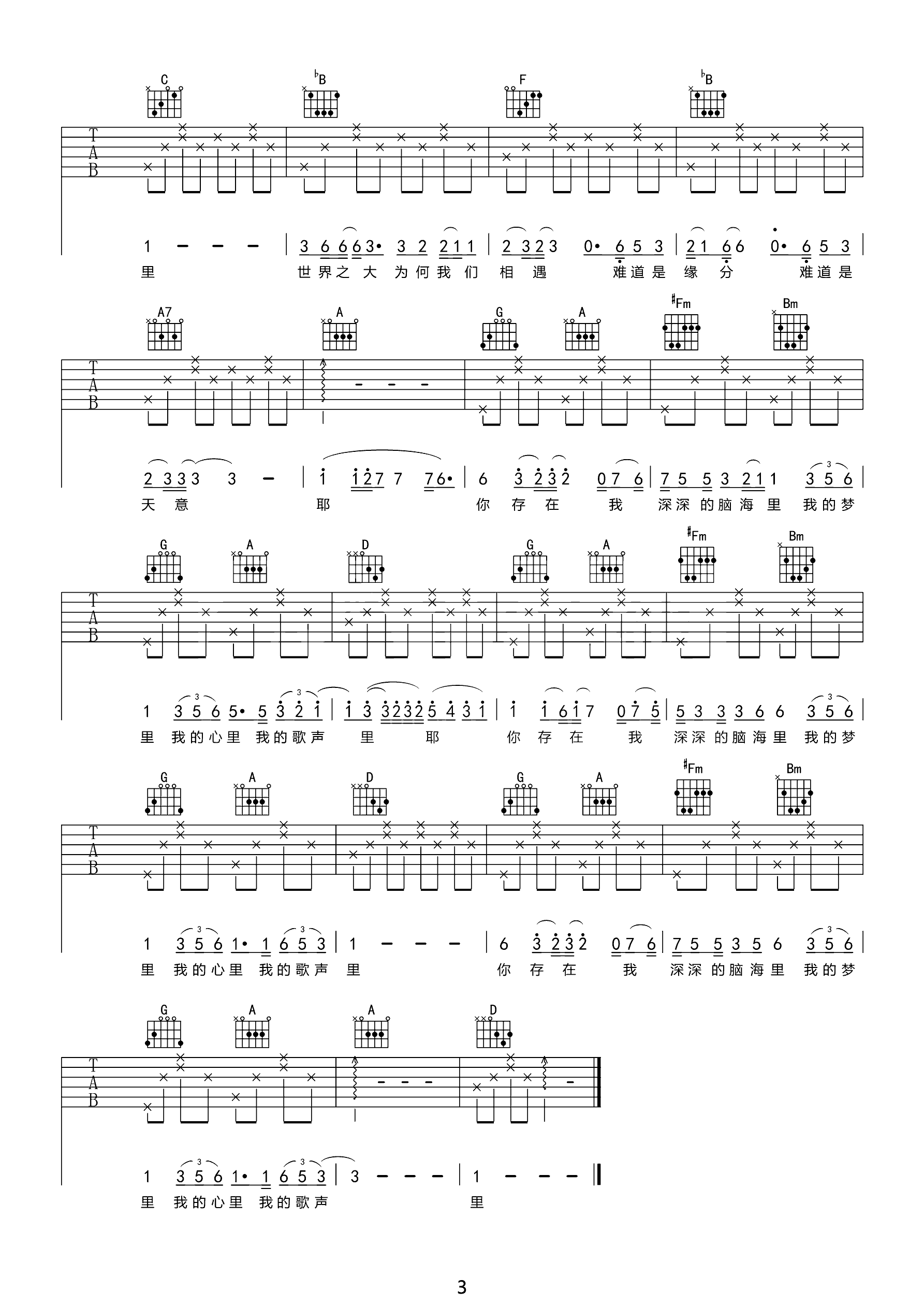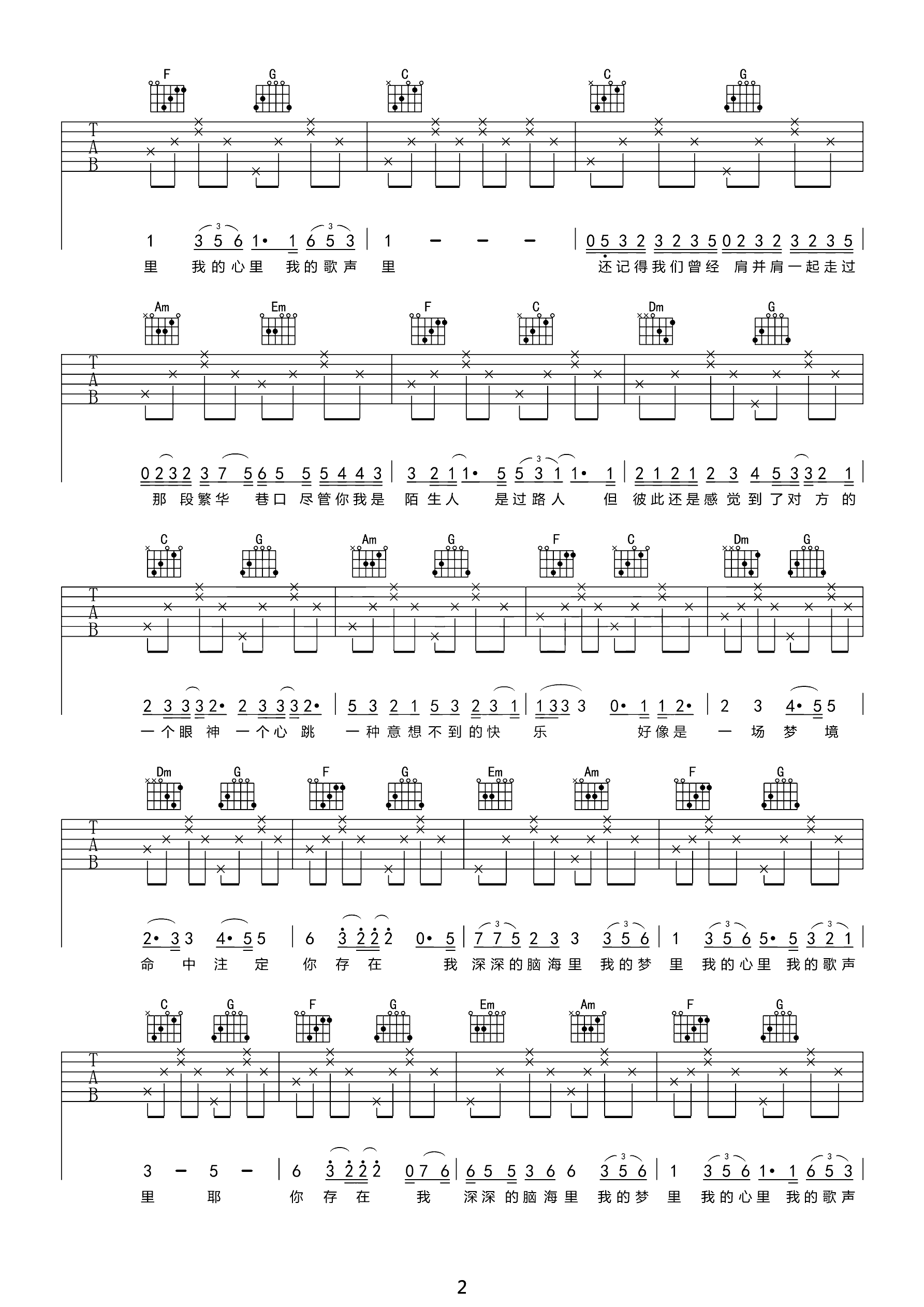 北京北京吉他谱 汪峰 C调指法编配 高清