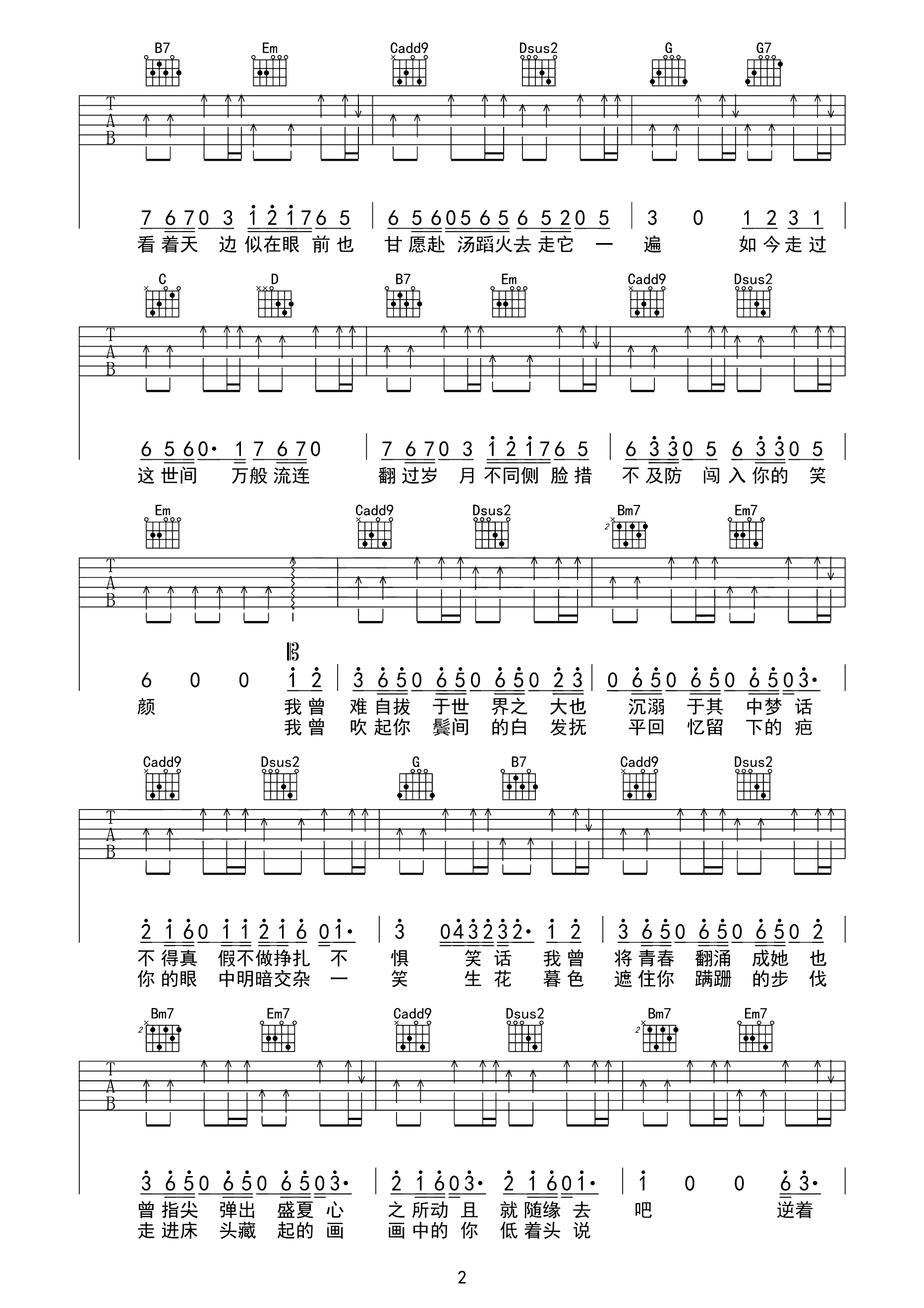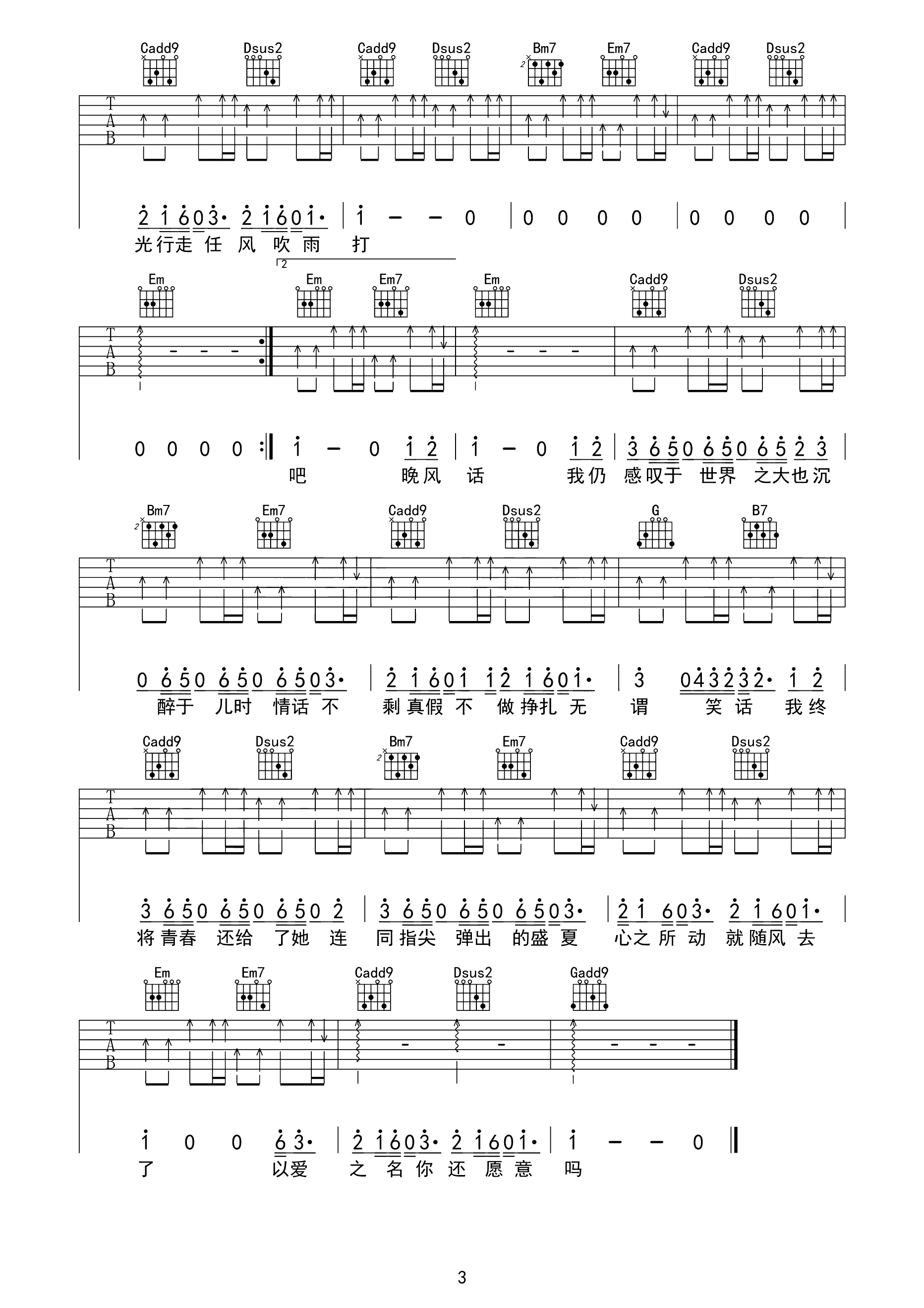 夏天的风指弹谱_温岚_吉他独奏谱_高清