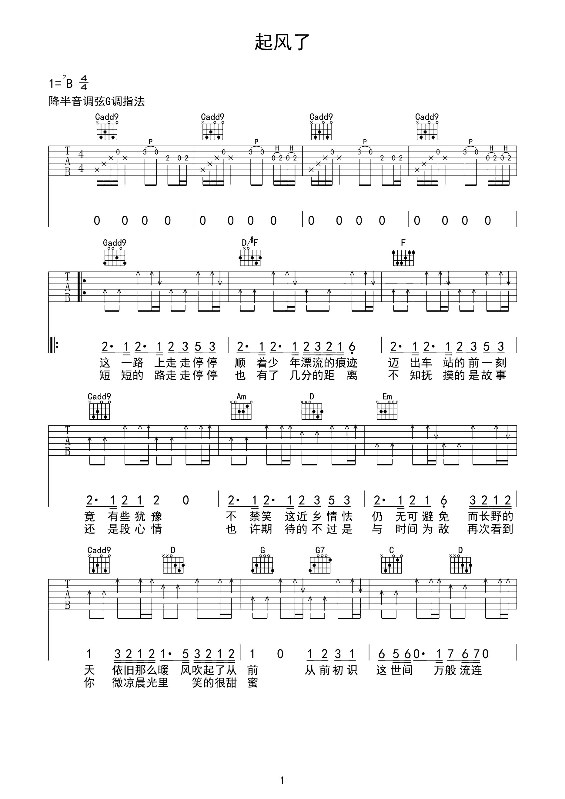 吉他谱 | 热门弹唱《起风了》