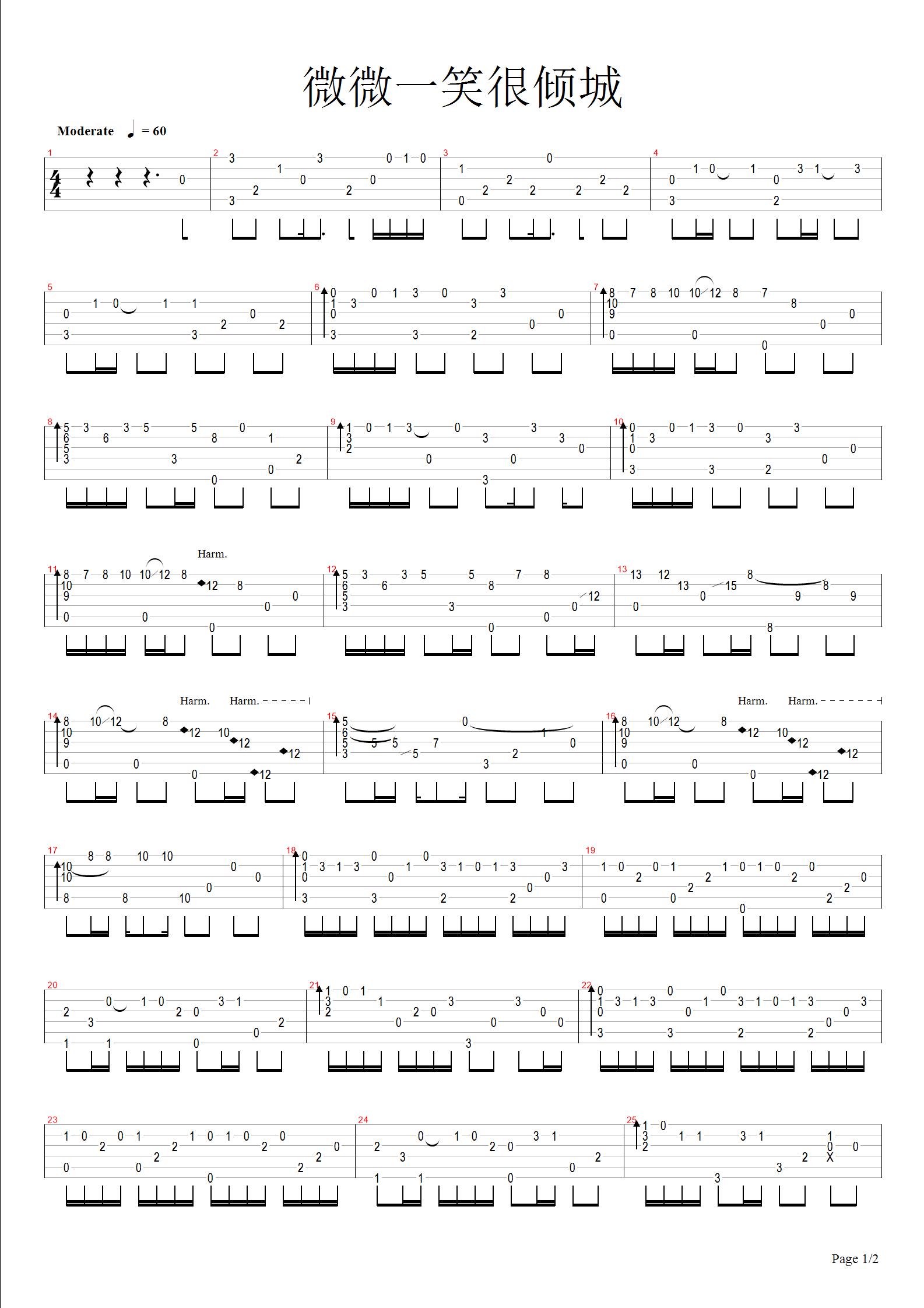 吉他谱 | 经典指弹《微微一笑很倾城》