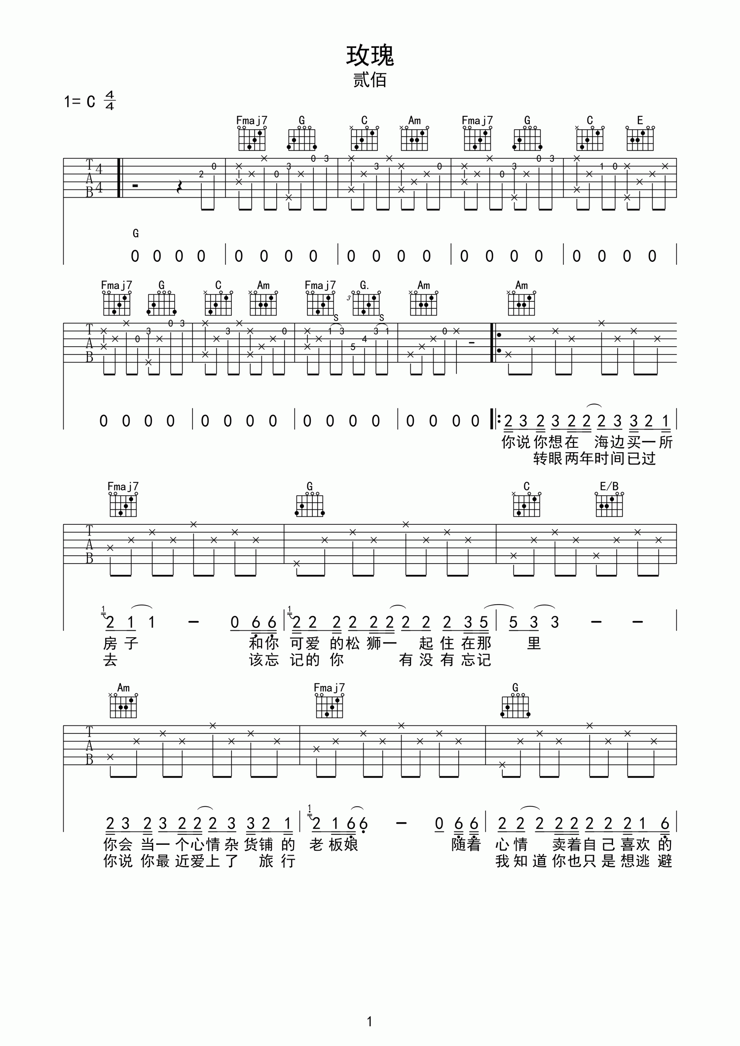 为爱痴狂吉他谱 C调简单版 刘若英 图片
