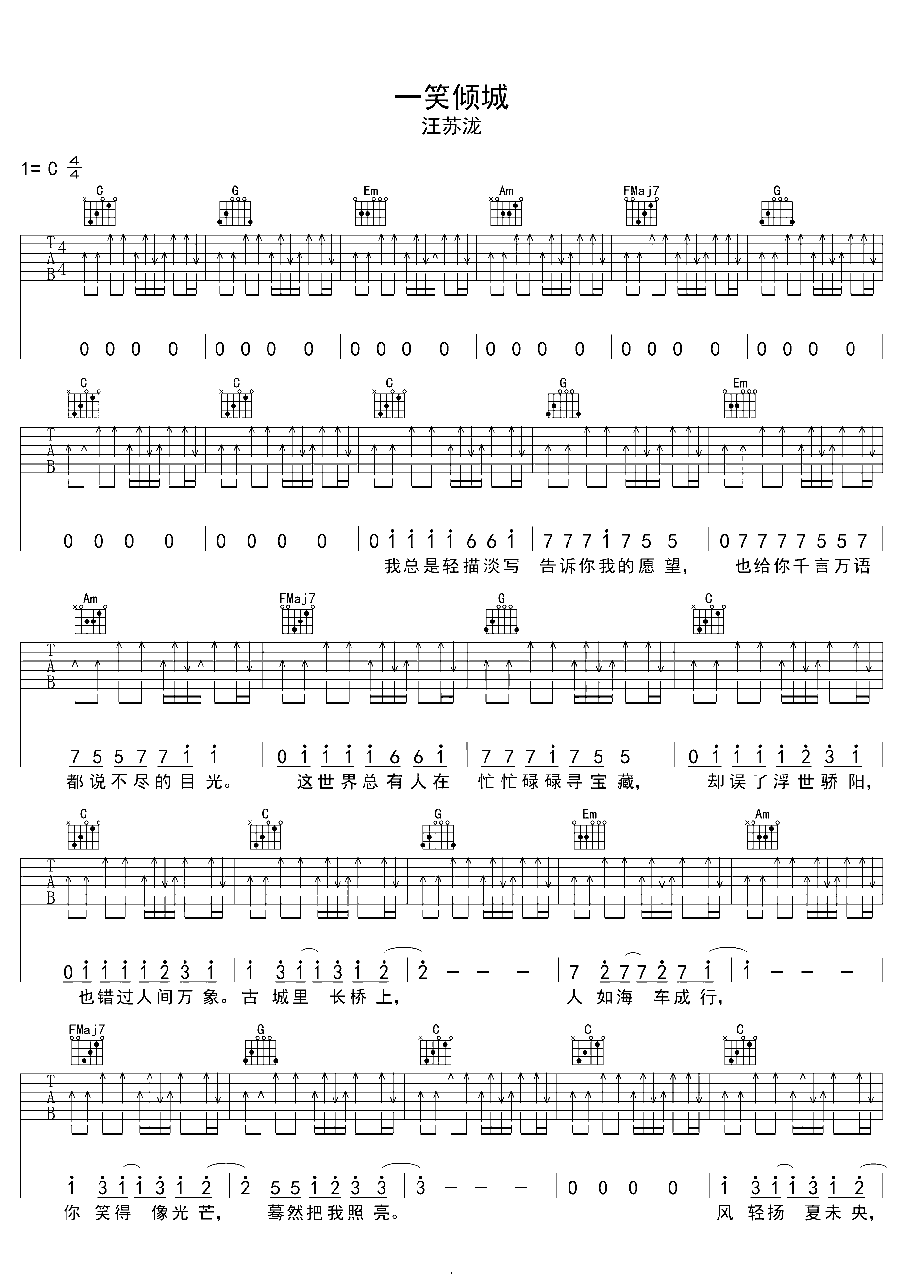 吉他谱 | 热门弹唱《微微一笑很倾城》