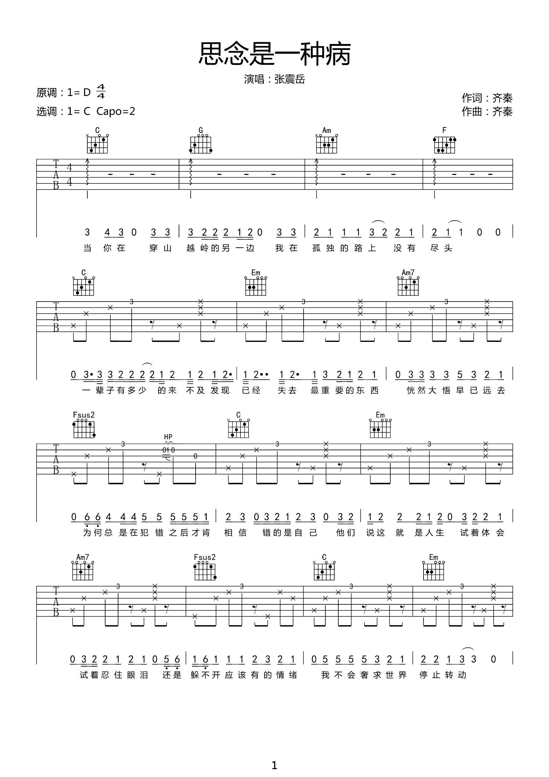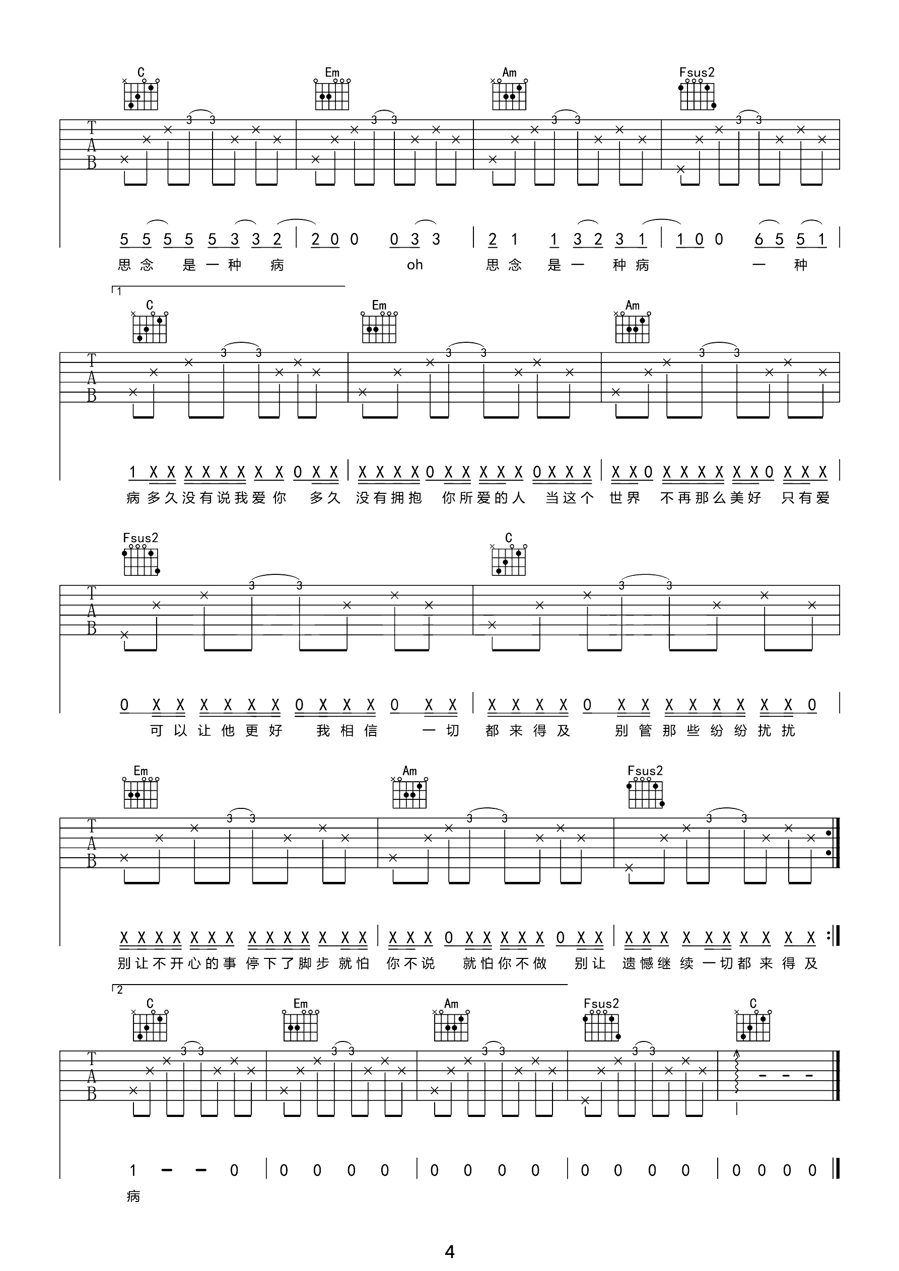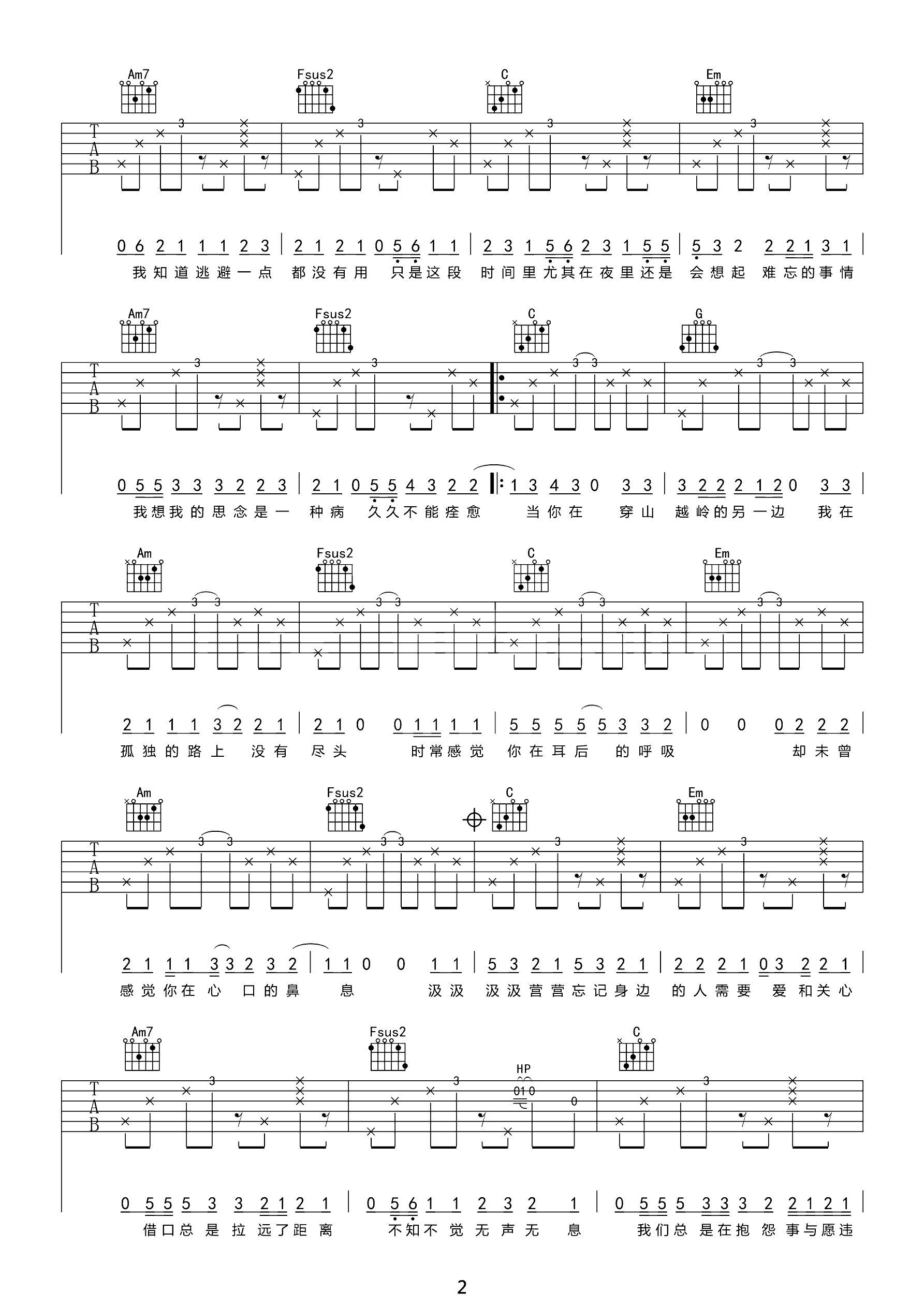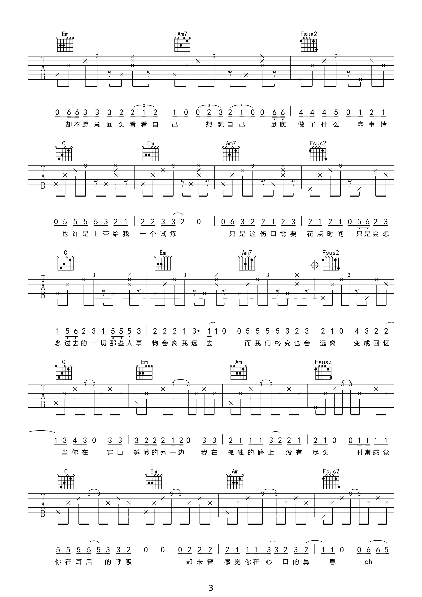 云淡风轻吉他谱_王欣宇/沈以诚_弹唱六