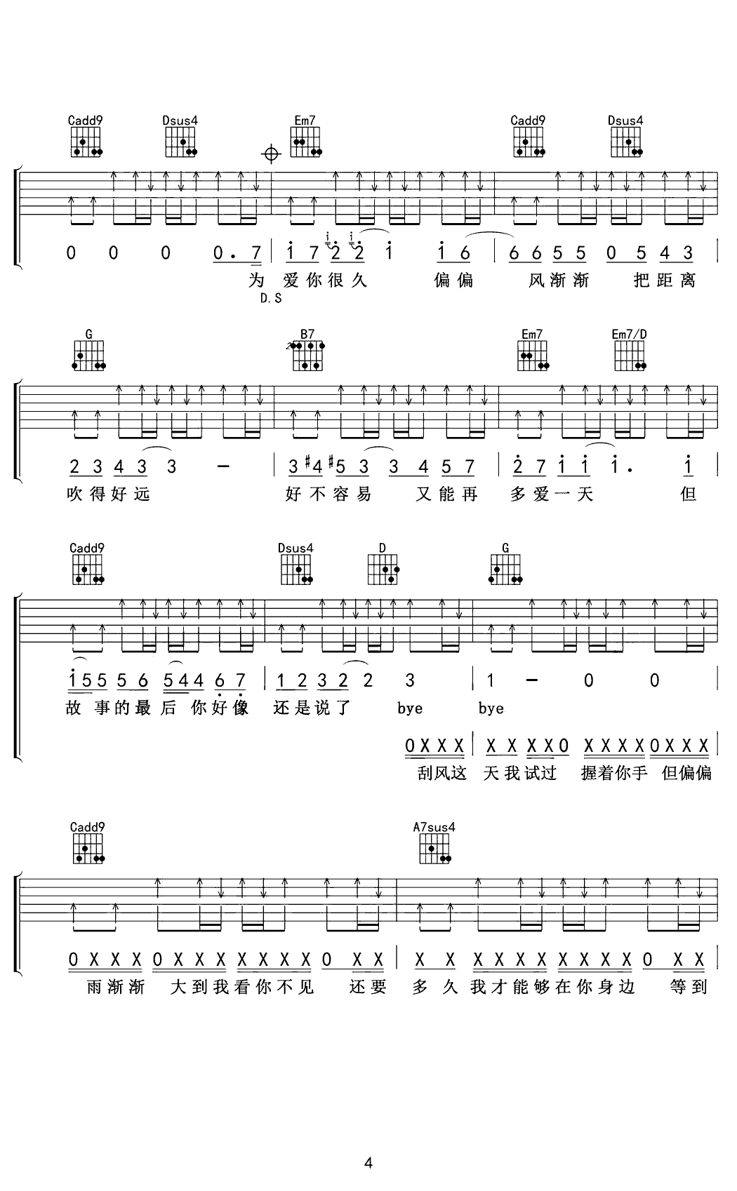 同桌的你吉他谱_吉他入门弹唱谱_C调吉