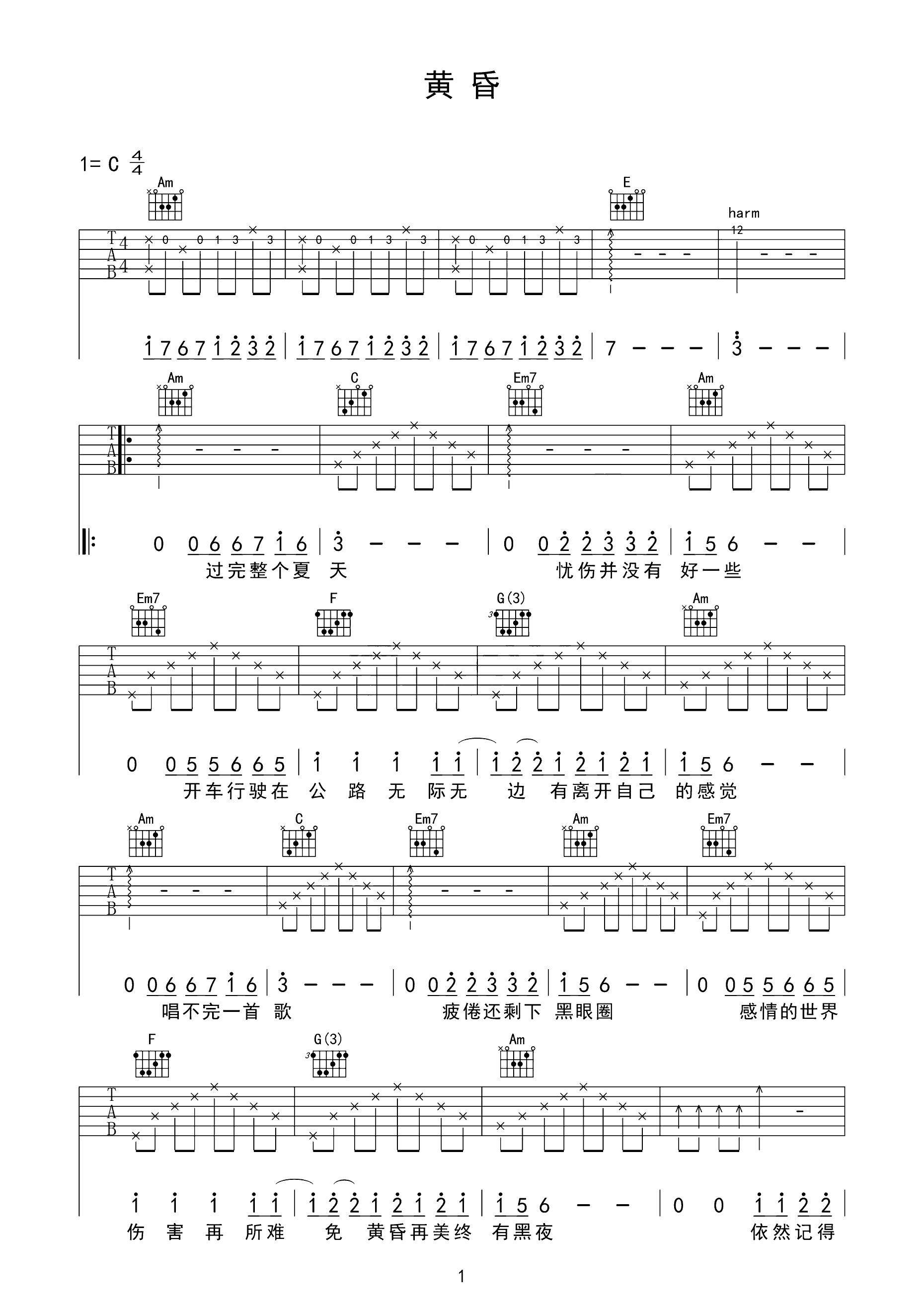 吉他谱 | 热门弹唱《黄昏》