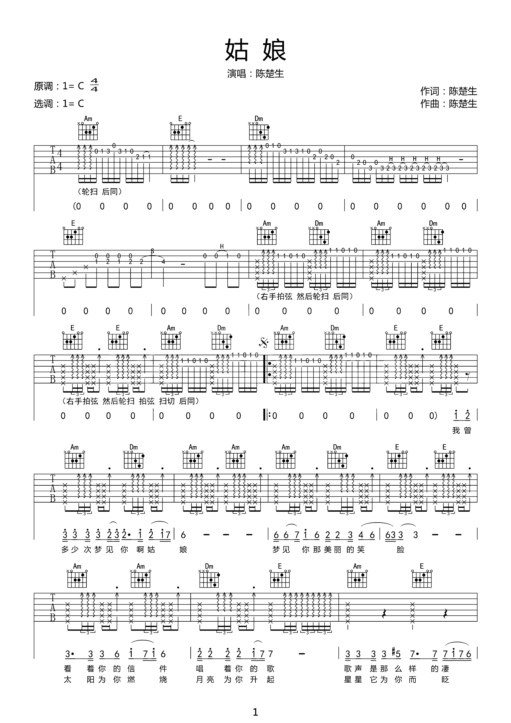 吉他谱 | 热门弹唱《姑娘》