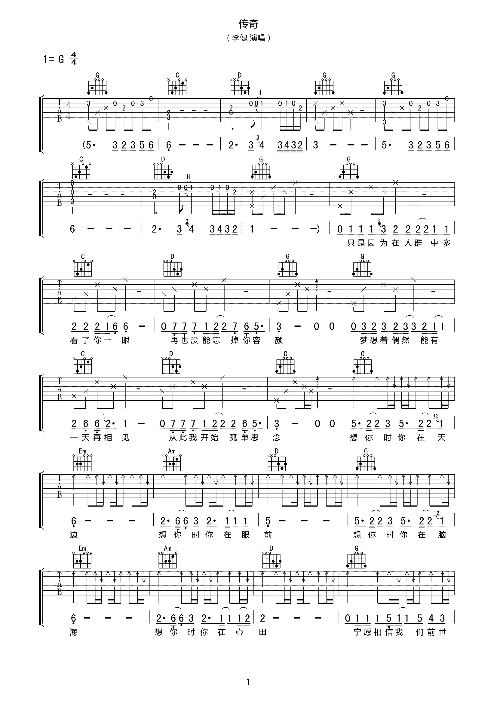 爱的代价吉他谱 李宗盛 高清弹唱谱 图