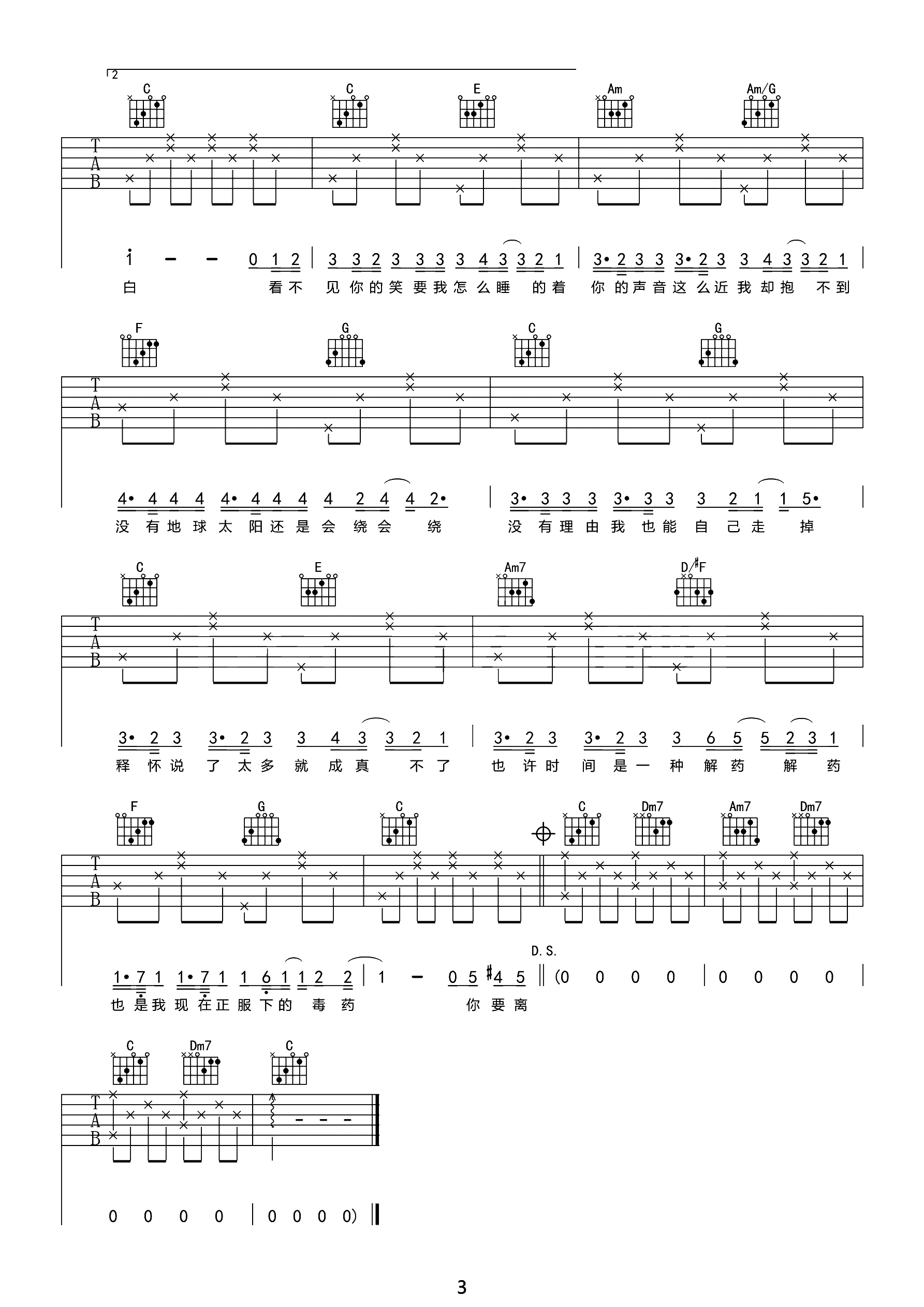 浮生吉他谱 刘莱斯 C调弹唱谱 《浮生》