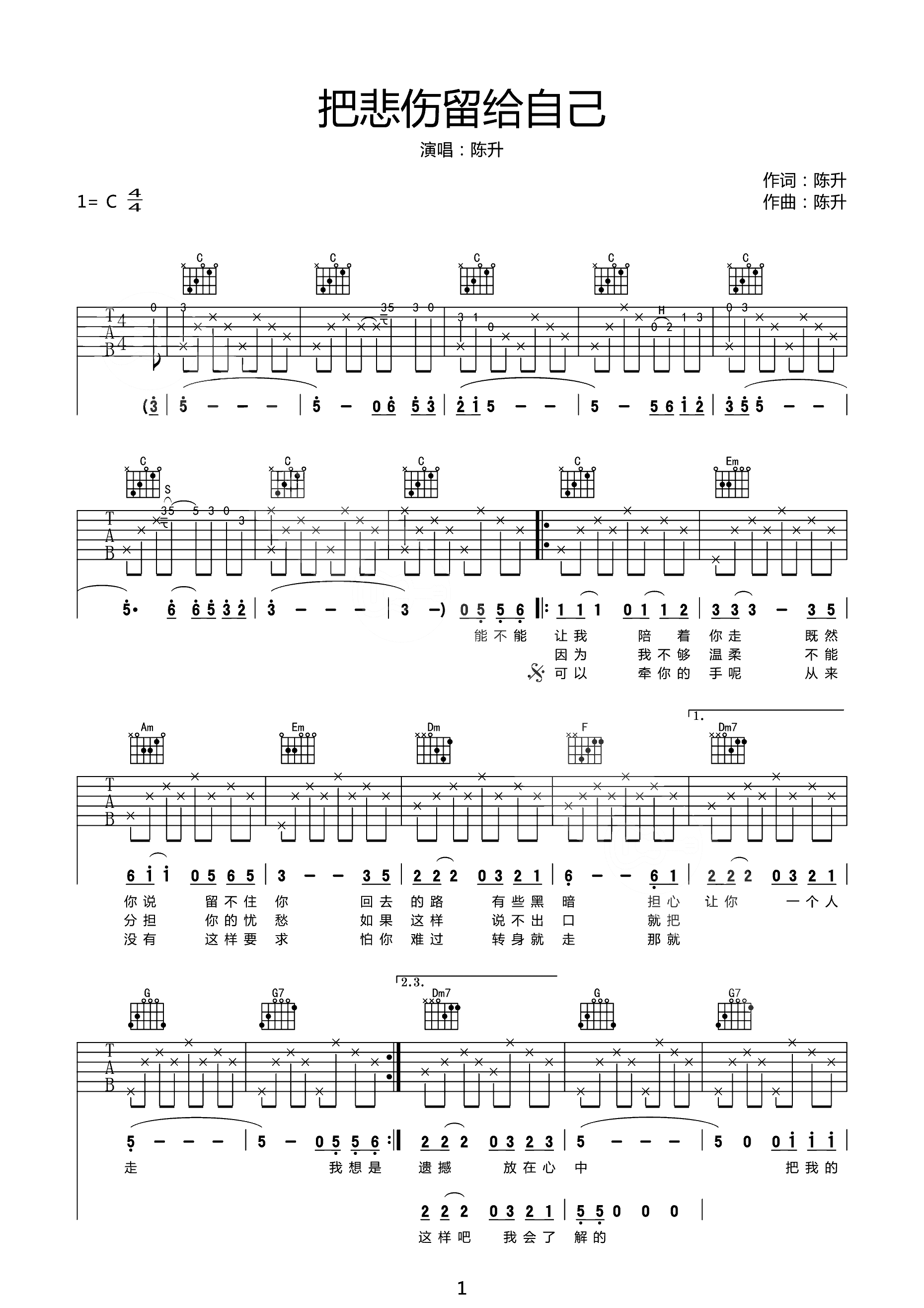吉他谱 | 热门弹唱《把悲伤留给自己》