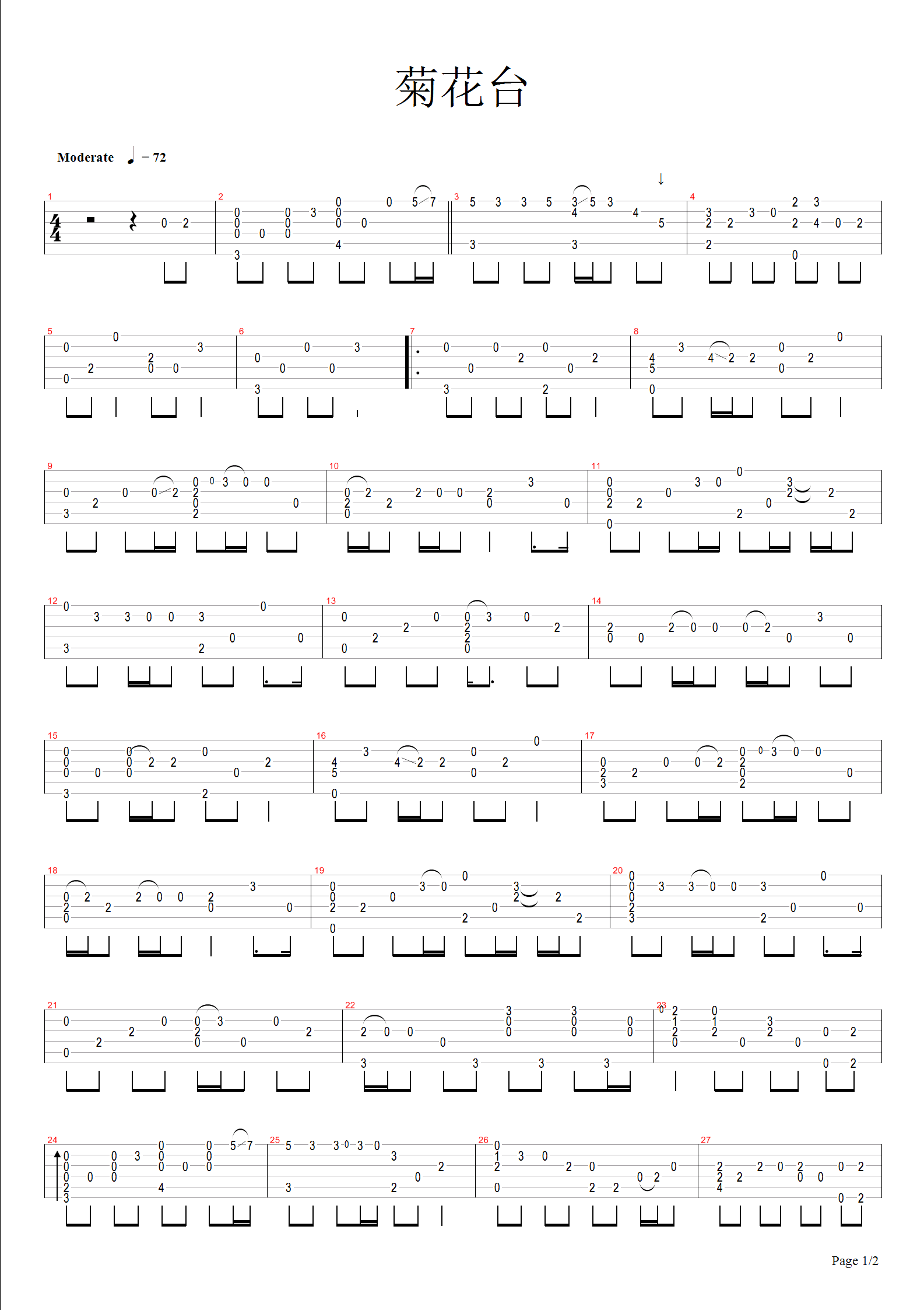 吉他谱 | 经典指弹《菊花台》