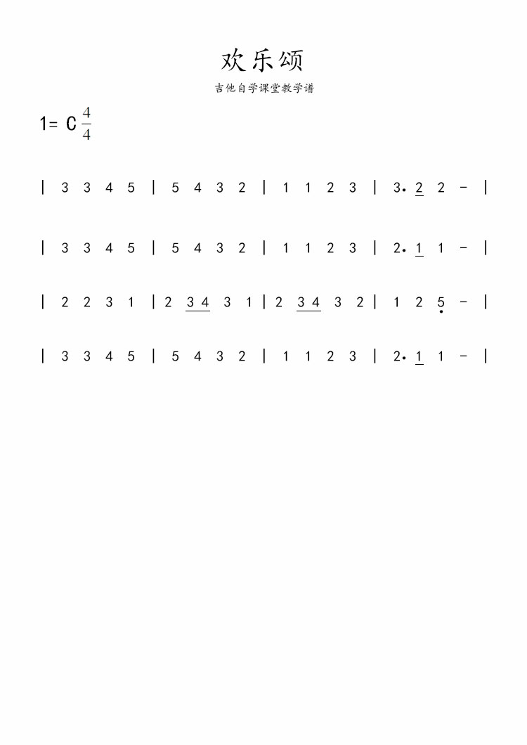 吉他谱 | 简谱《欢乐颂》