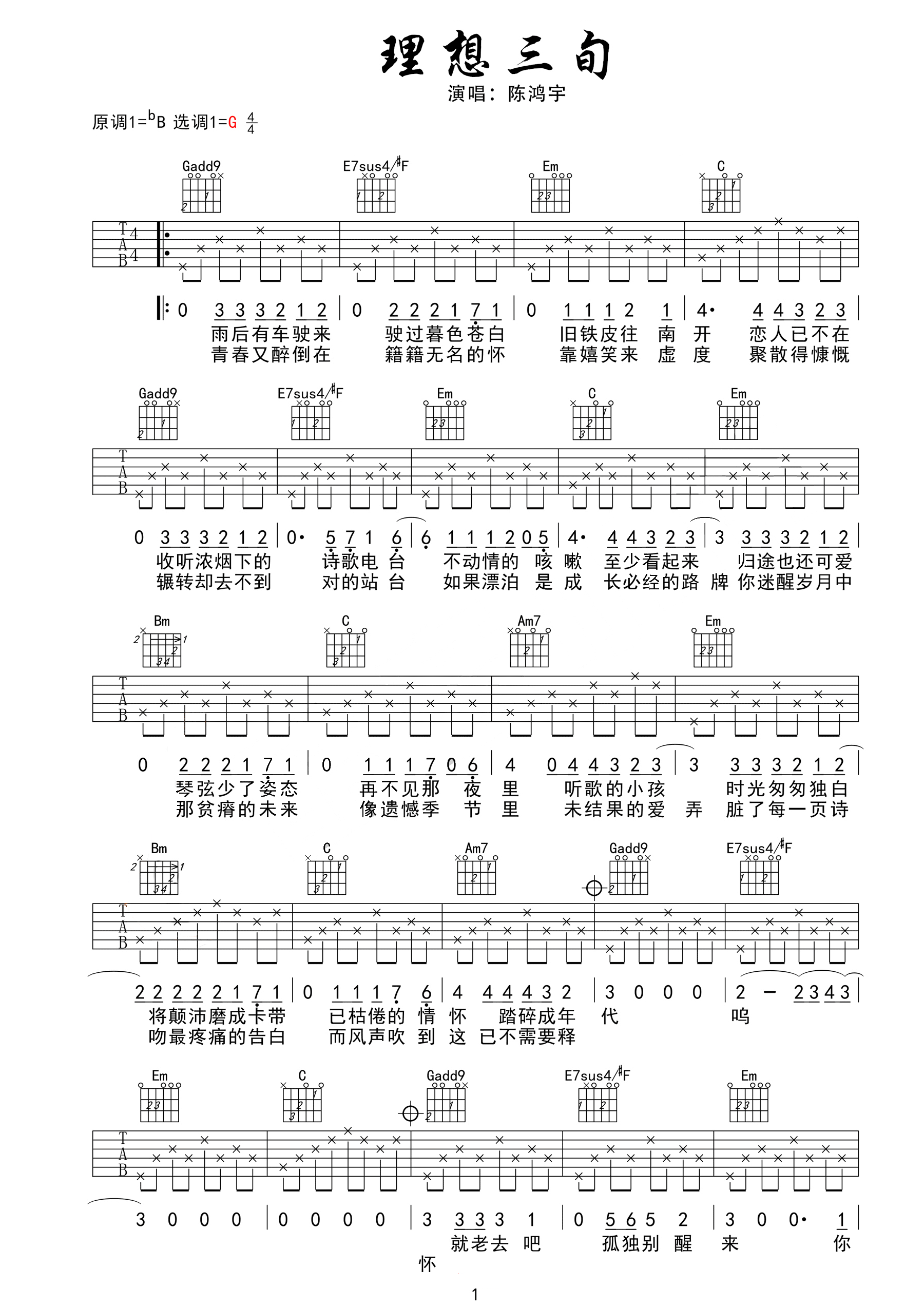 吉他谱 | 热门弹唱《理想三旬》