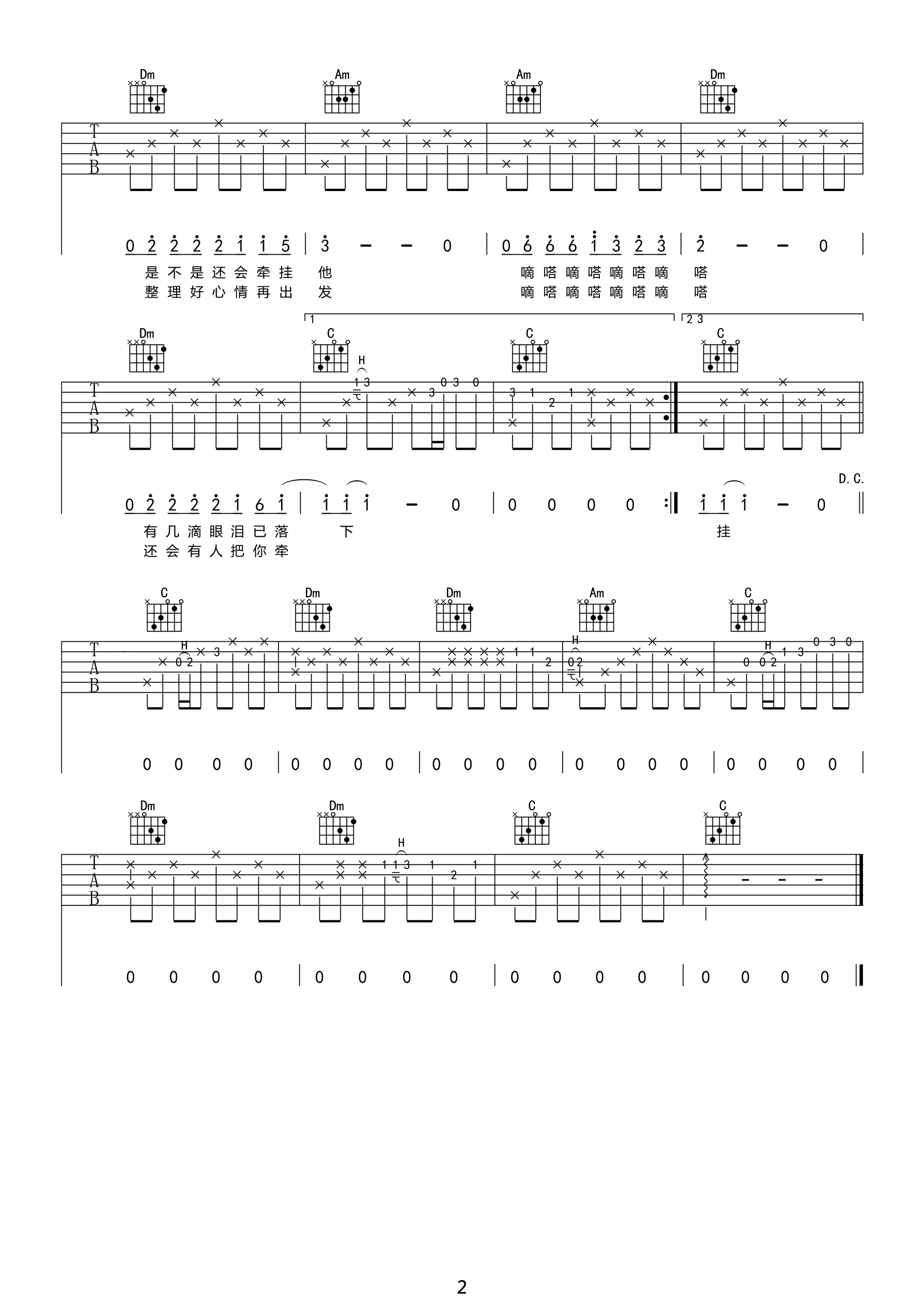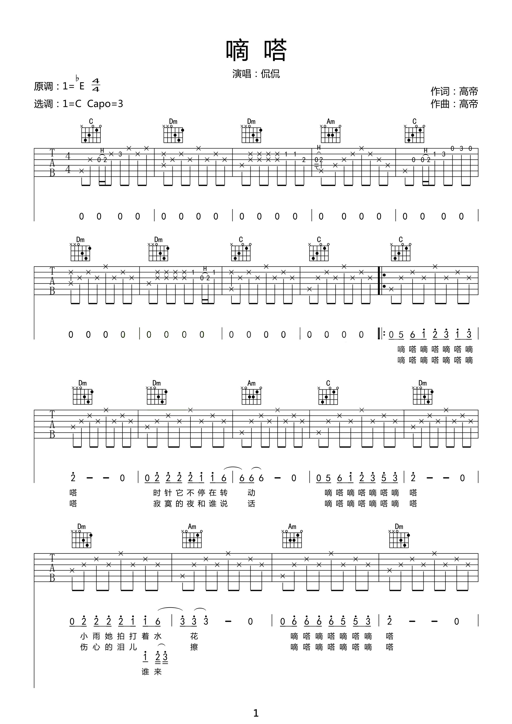 吉他谱 | 热门弹唱《嘀嗒》
