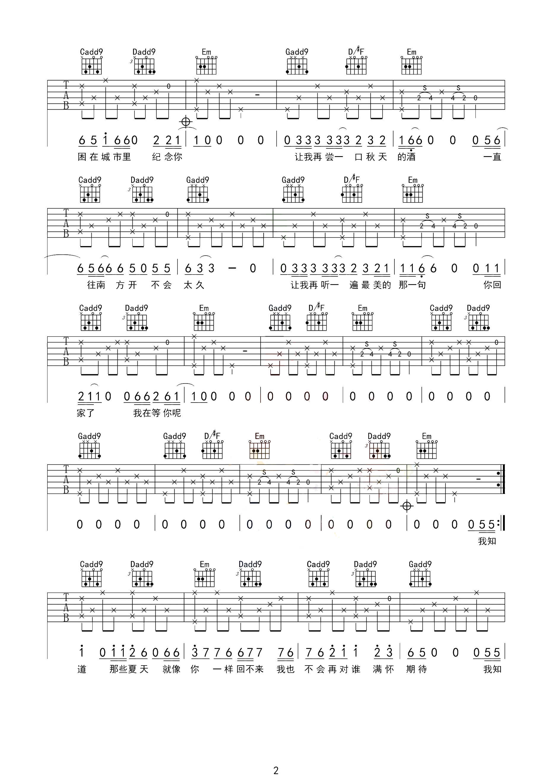 summer吉他谱