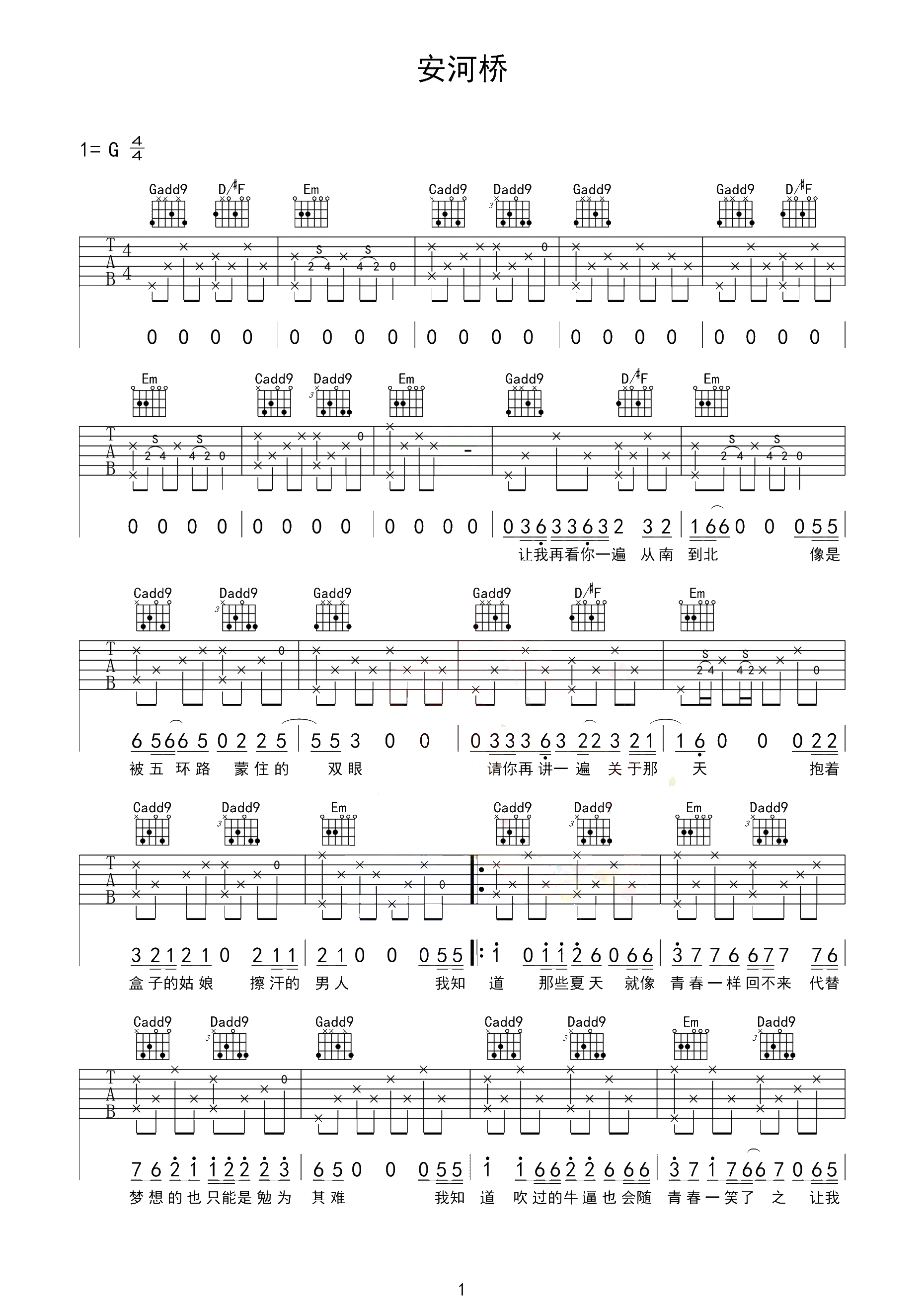 吉他谱 | 热门弹唱《安和桥》