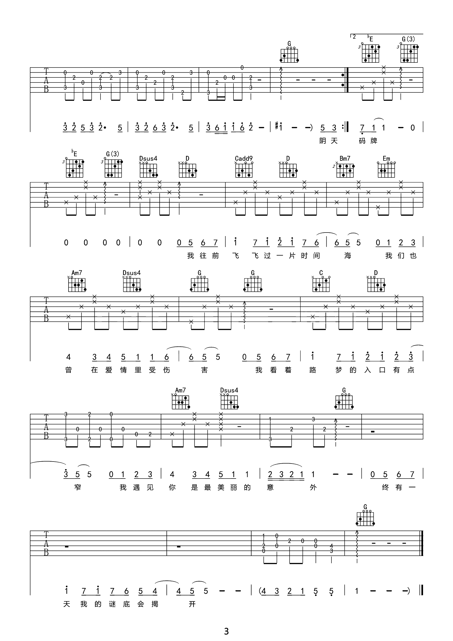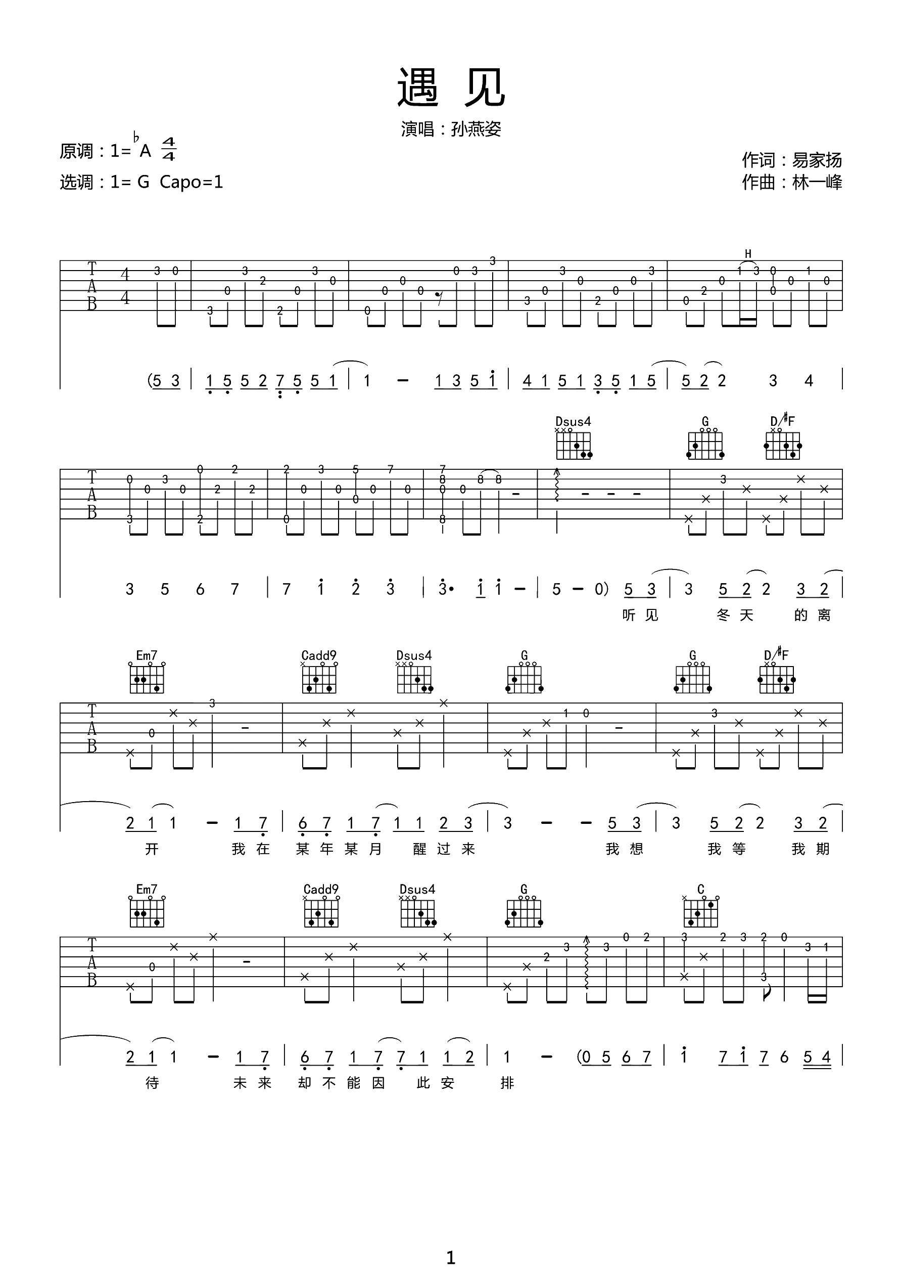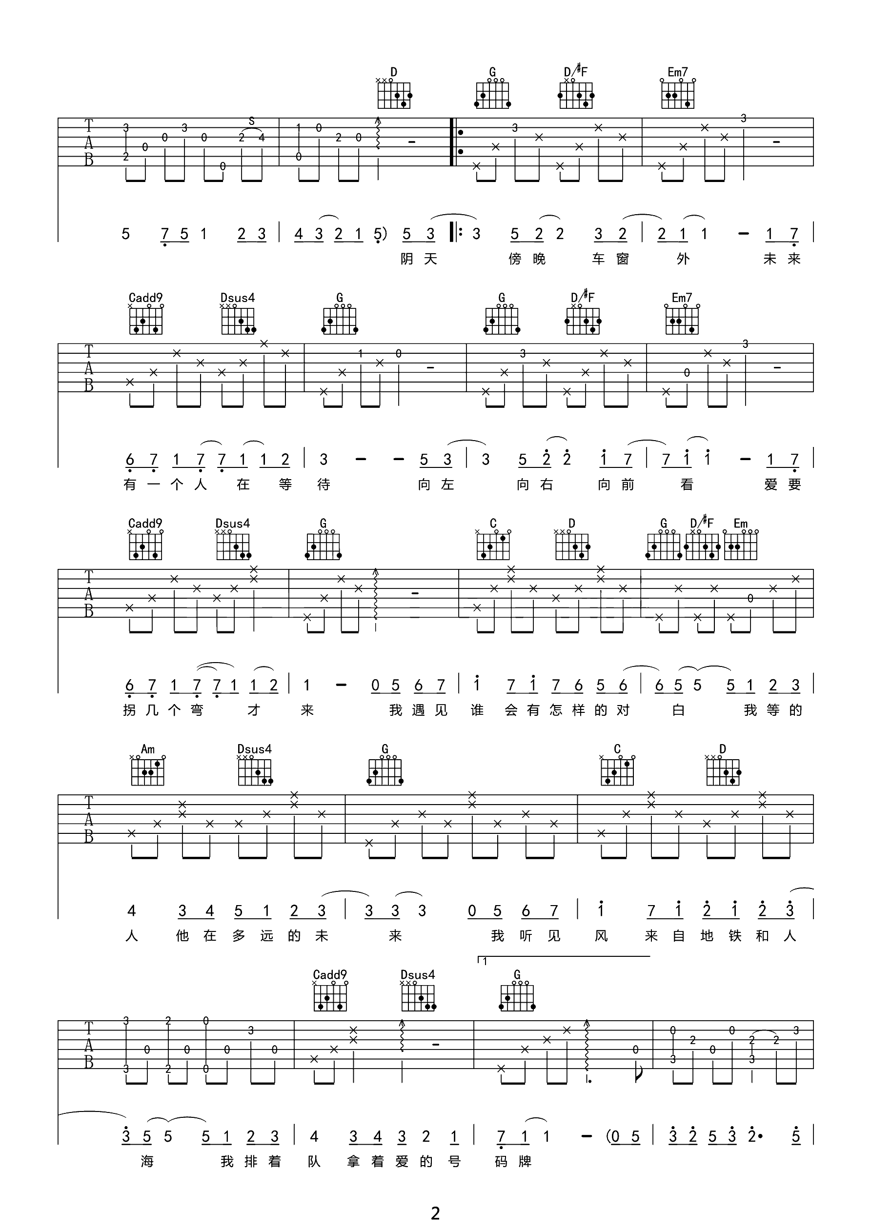 一生与你檫肩而过吉他谱_阿悠悠_G调弹