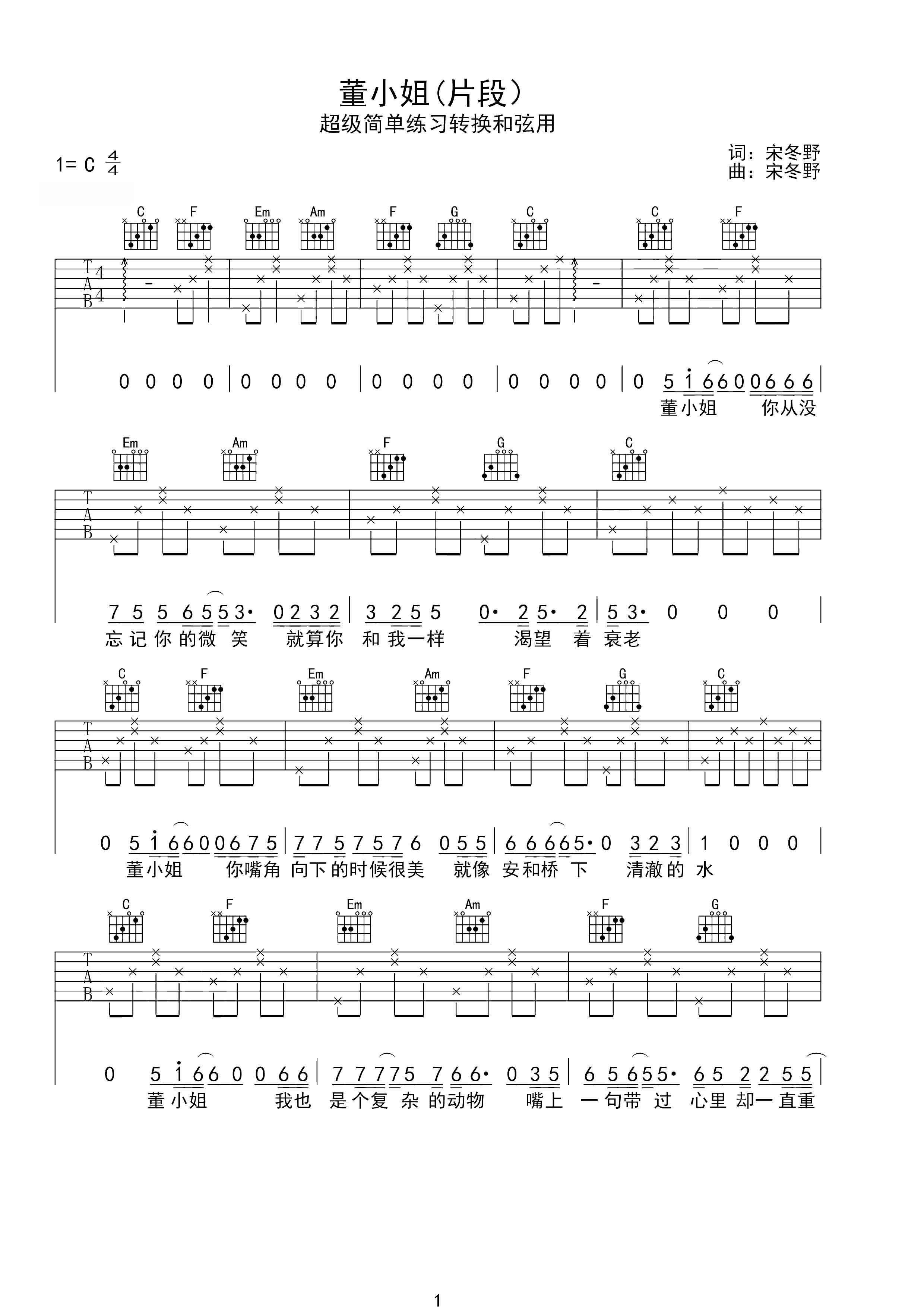 关键词吉他谱_林俊杰_G调六线谱_弹唱示