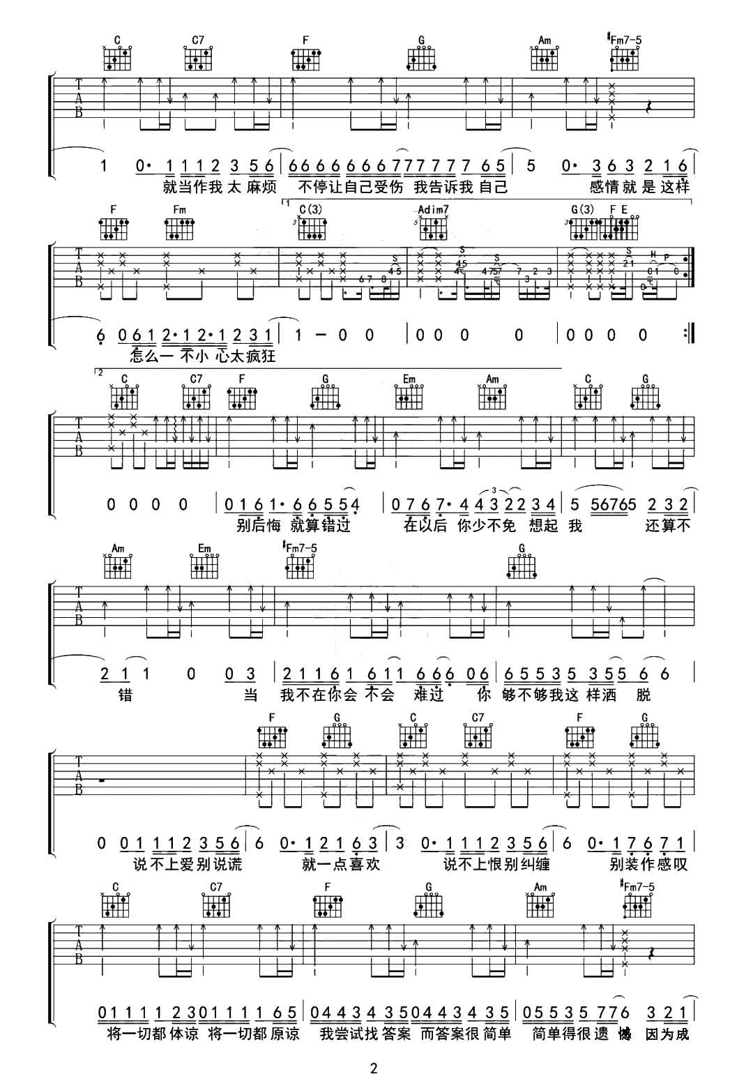 演员吉他谱_薛之谦《演员》六线谱_完整