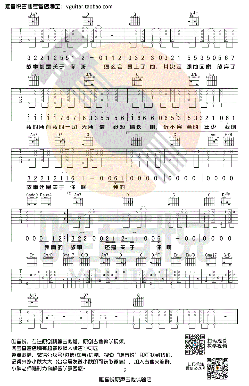 纸短情长吉他谱 超简单版 烟把儿 吉他弹唱谱