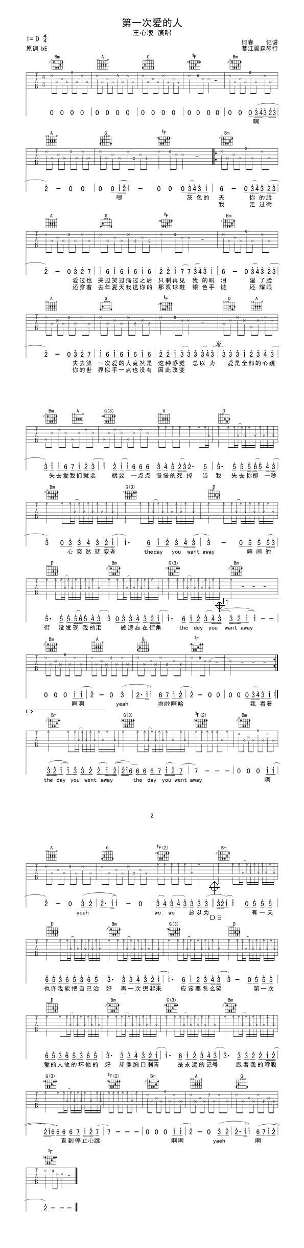 第一次爱的人-王心凌吉他谱